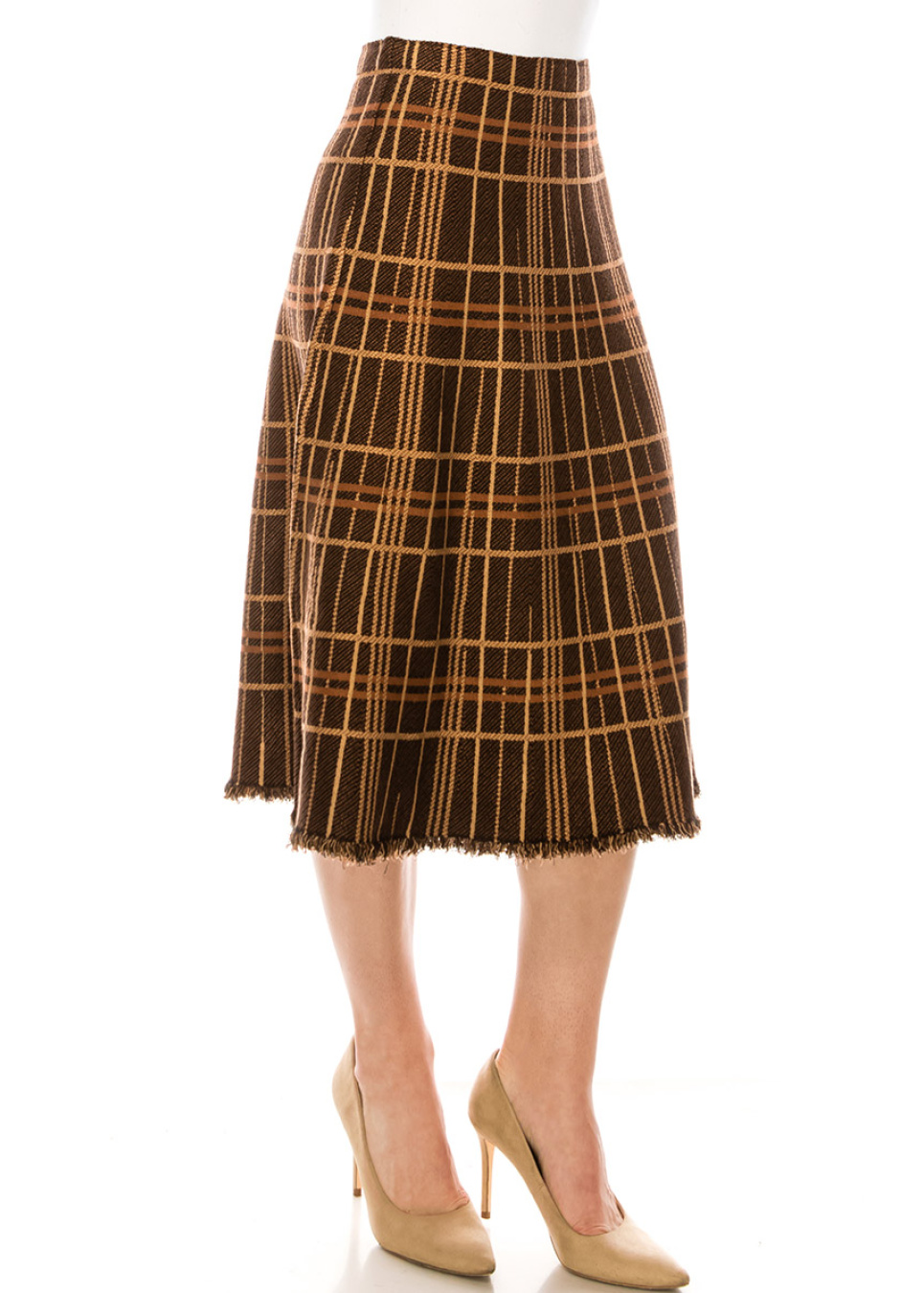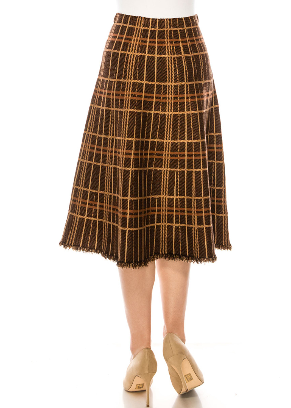 A-line checkered skirt with fringe edge
