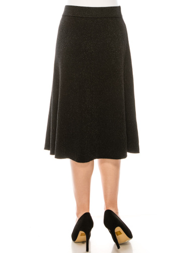 A-line midi lurex skirt in black