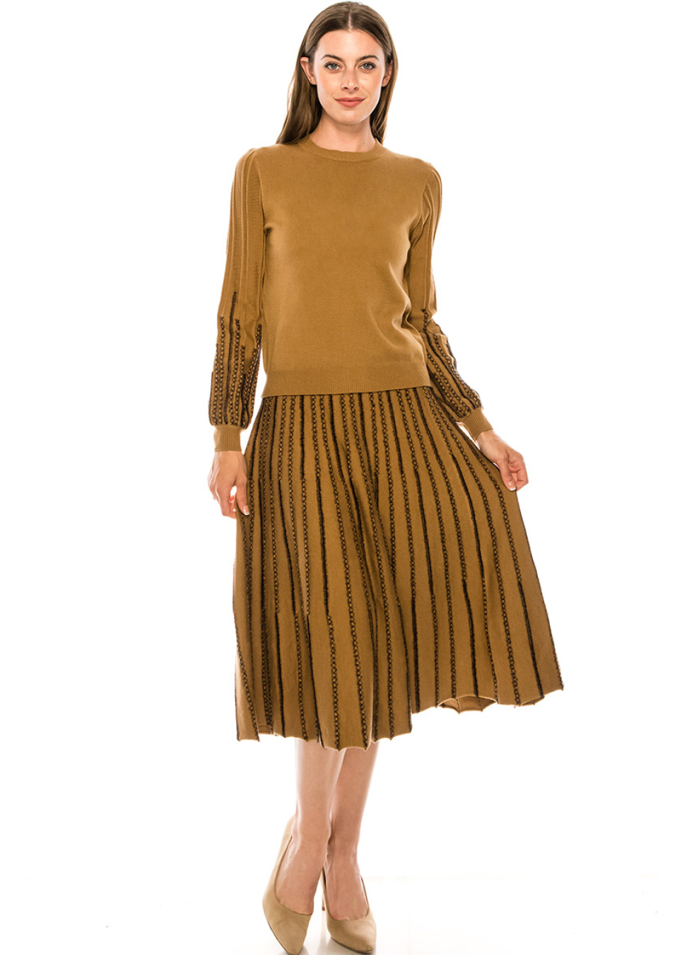 A-line skirt with embroidery in camel