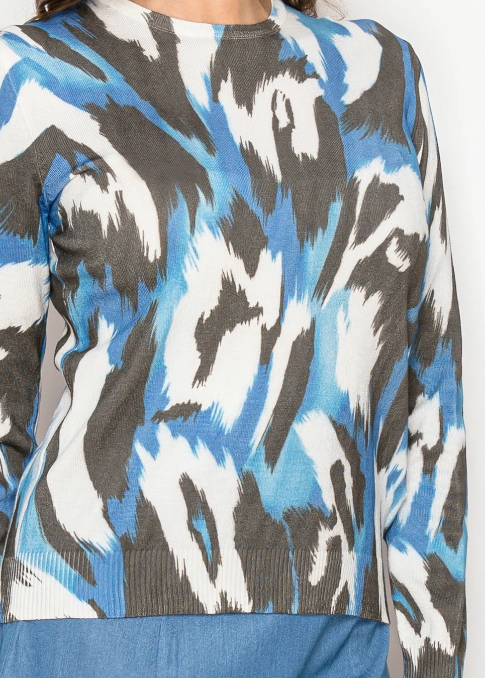 Abstract Blue Black Crew Neck Sweater