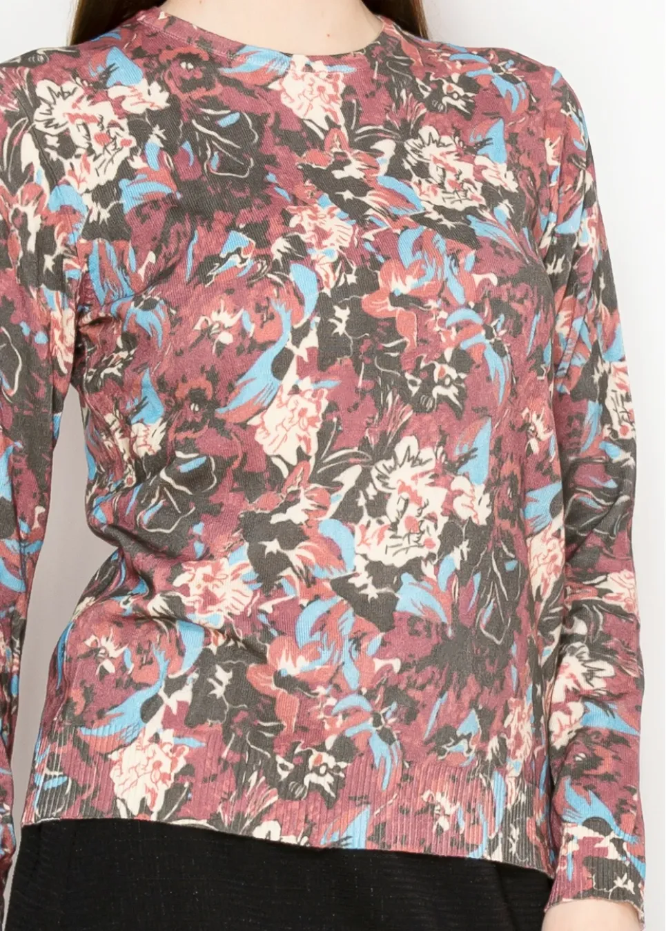 Abstract Floral Sweater in Burgundy Mix