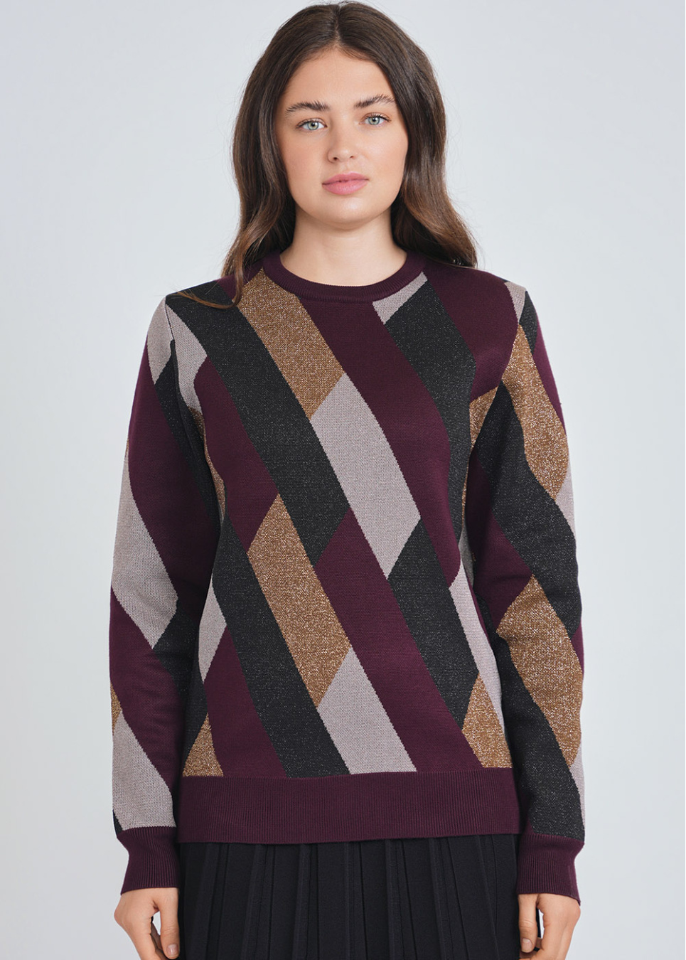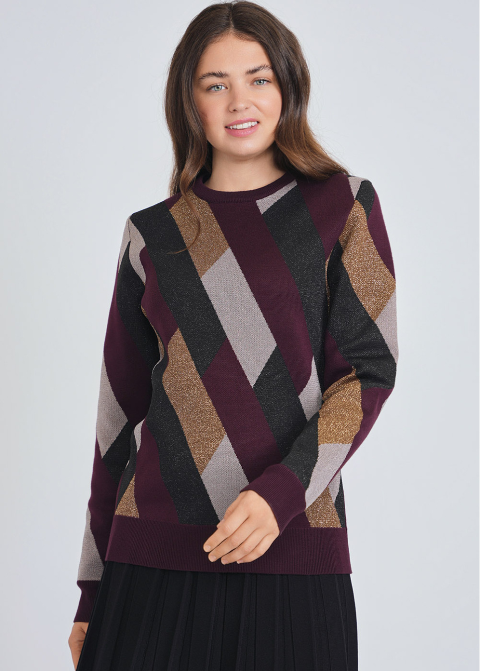 Geometric Colorblock Metallic Sweater in Multi