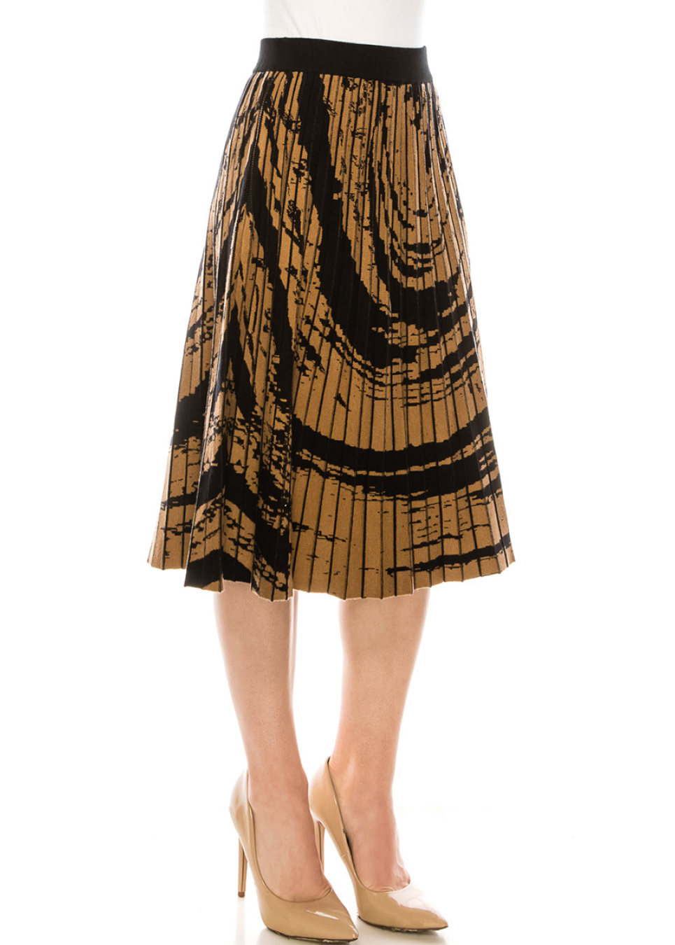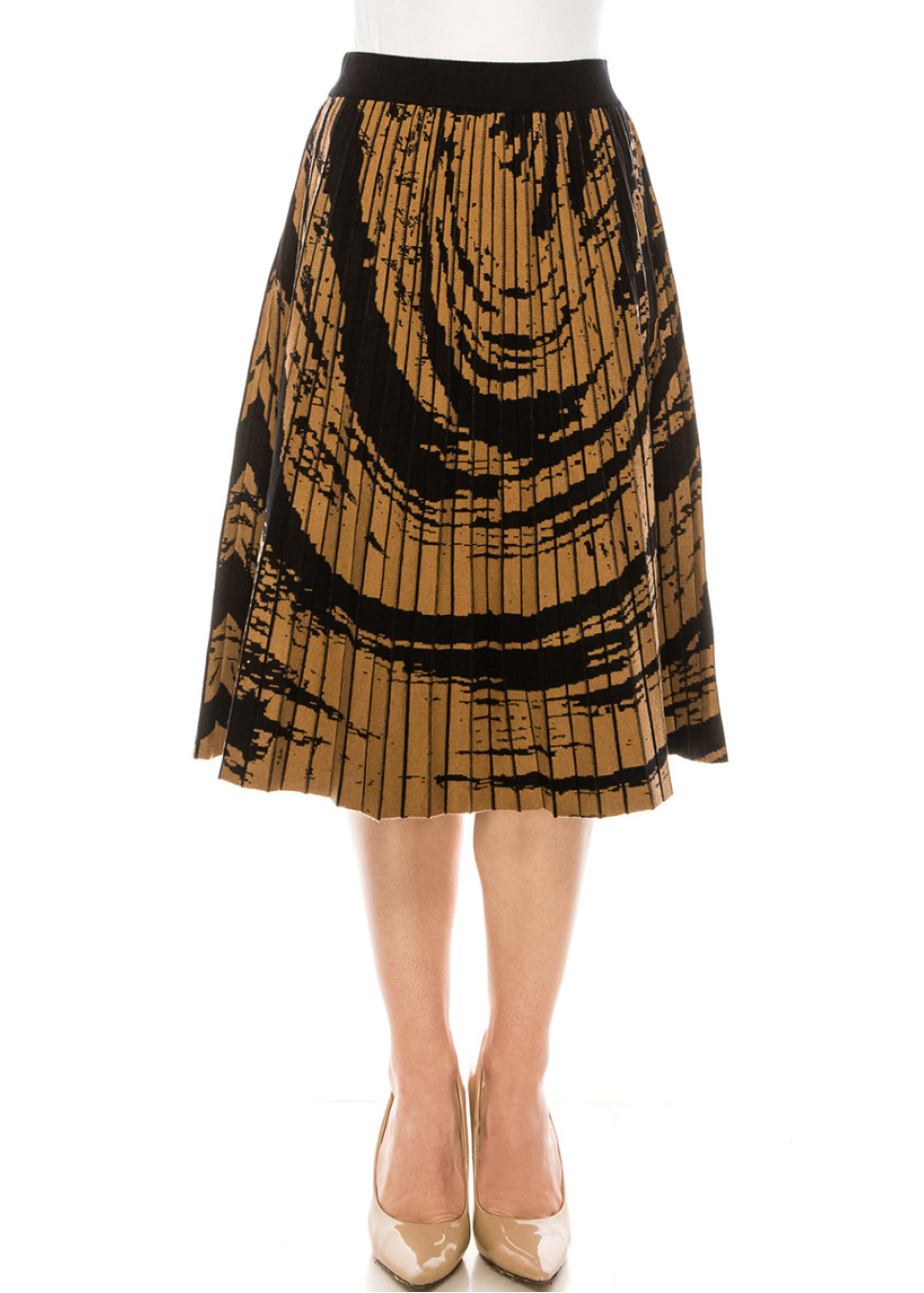 This flare hemmed, loose-fitting midi skirt is crafted from high-quality fabric with a breezy seersucker structure. Due to the waistband, the skirt offers a perfect fit. The abstract pattern adds a creative touch to the classic cut.