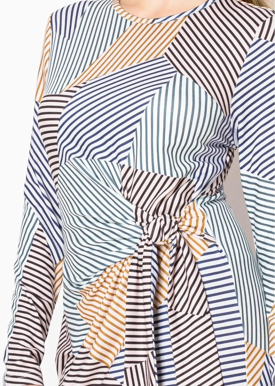 Abstract Stripes Tie-Waist Dress – Blue Multi