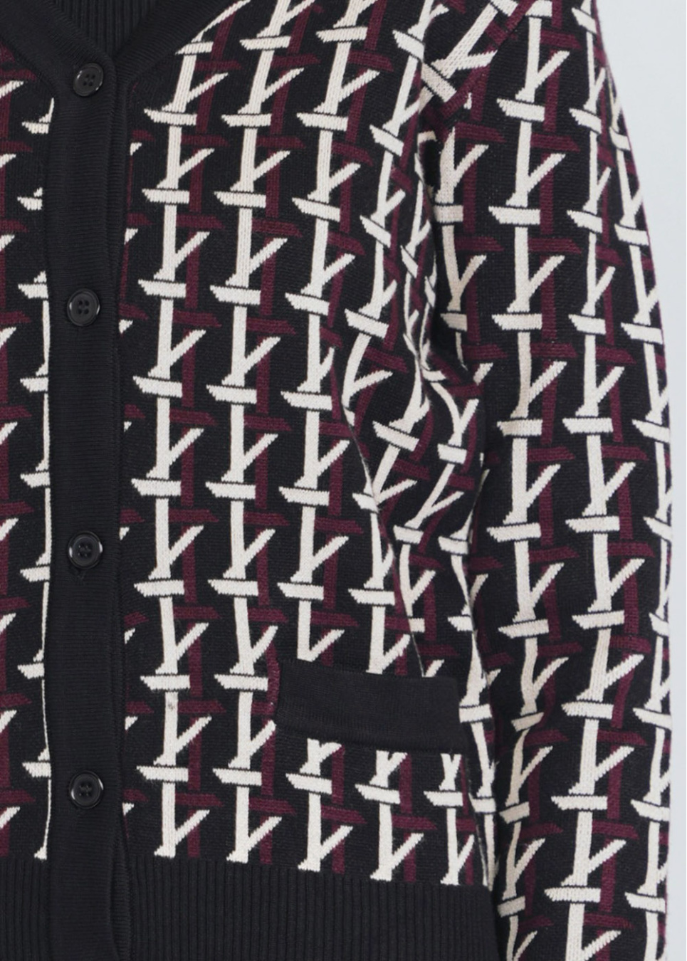 Burgundy Ribbed Cardigan with Stripes