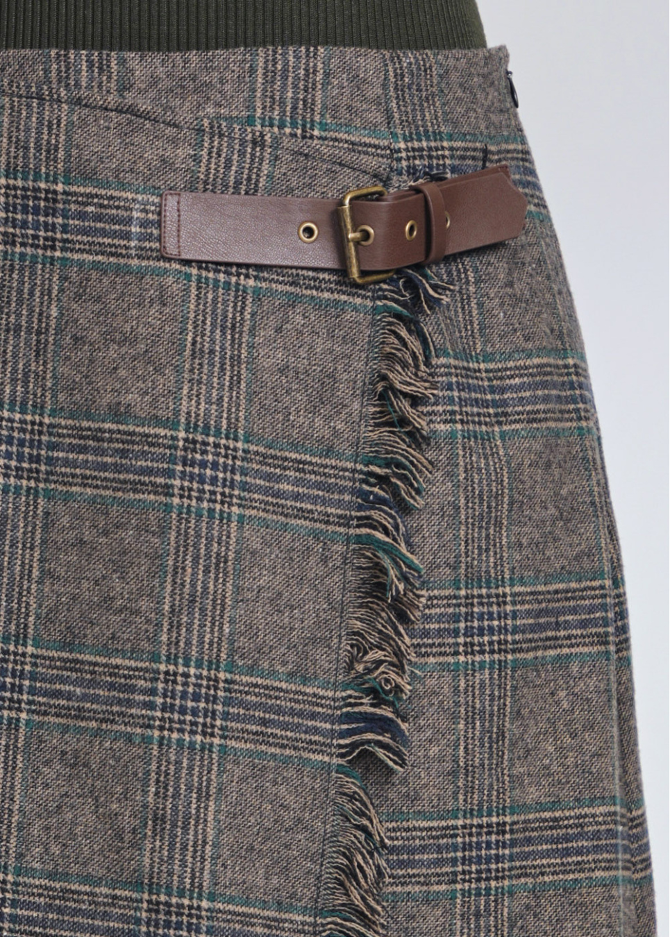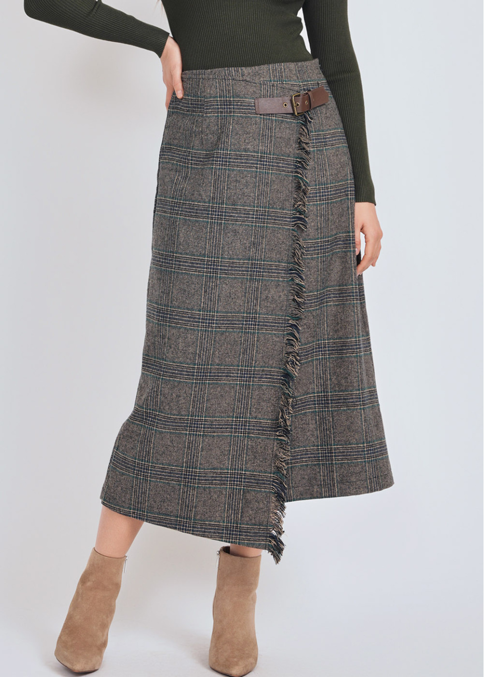 Asymmetric Allure: Checkered Grey Midi Skirt