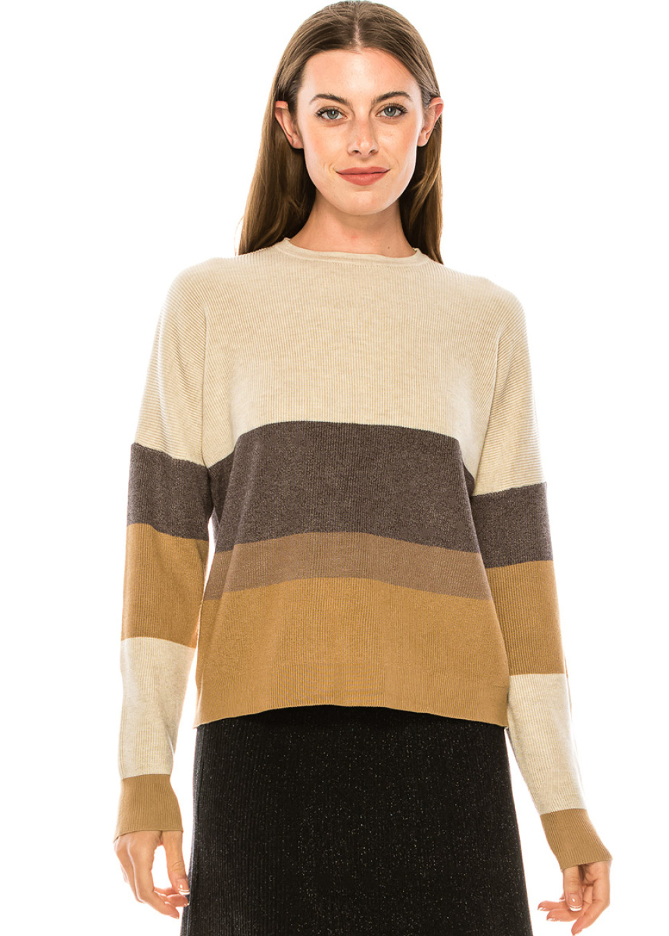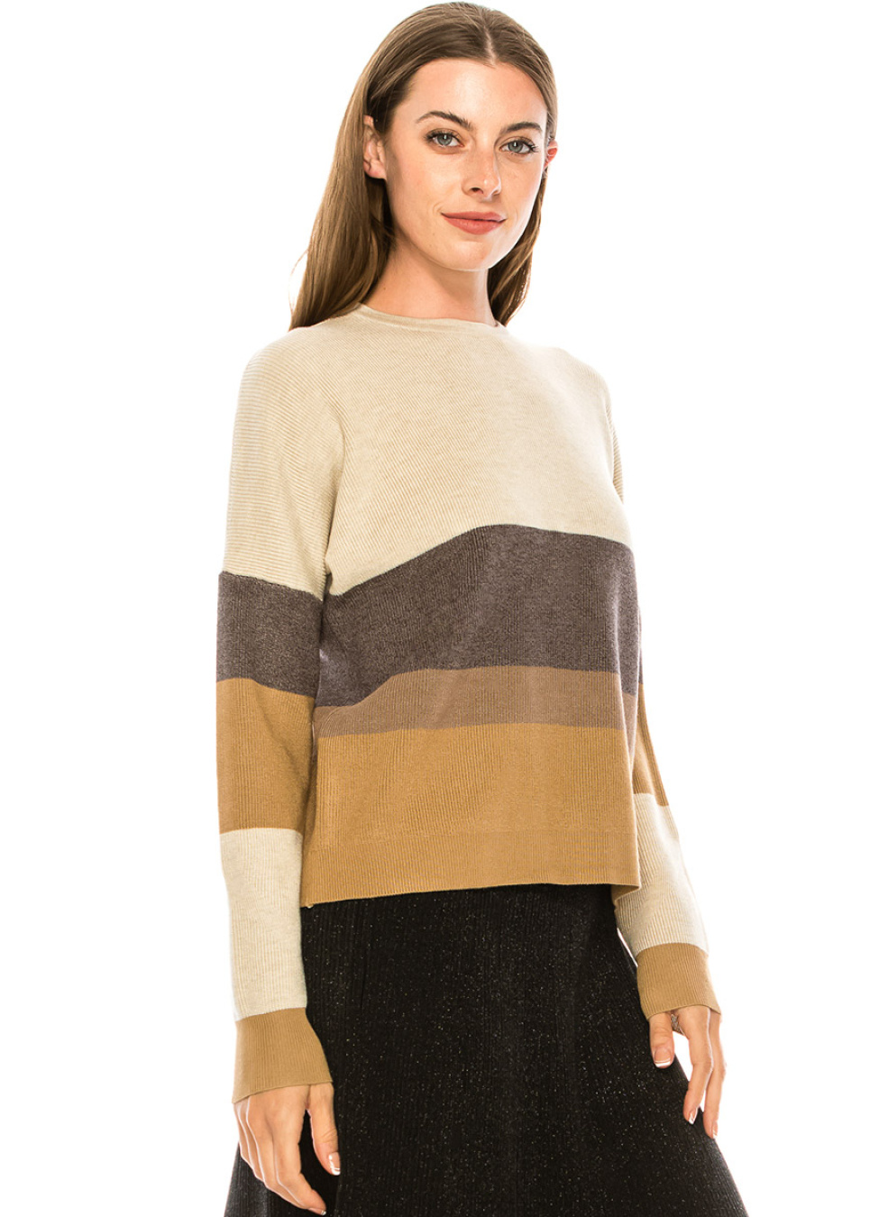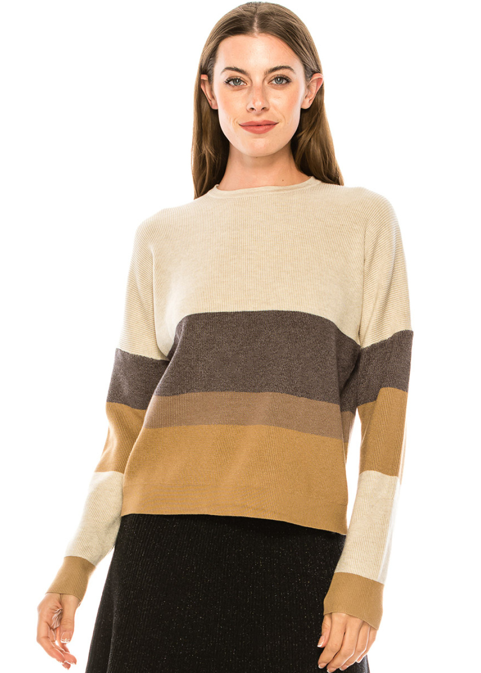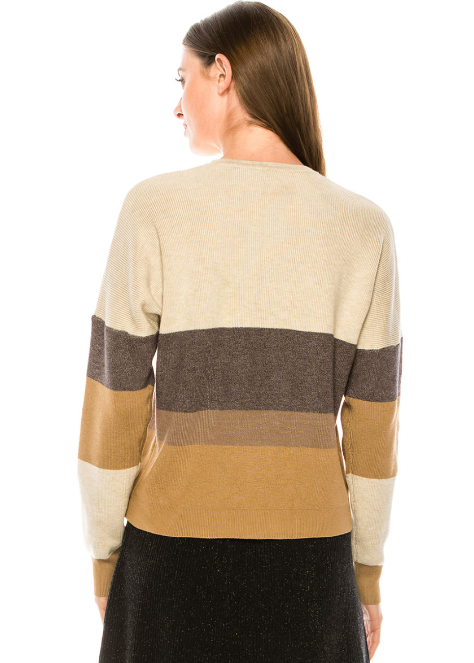 Camel & Black Striped Ribbed Sweater