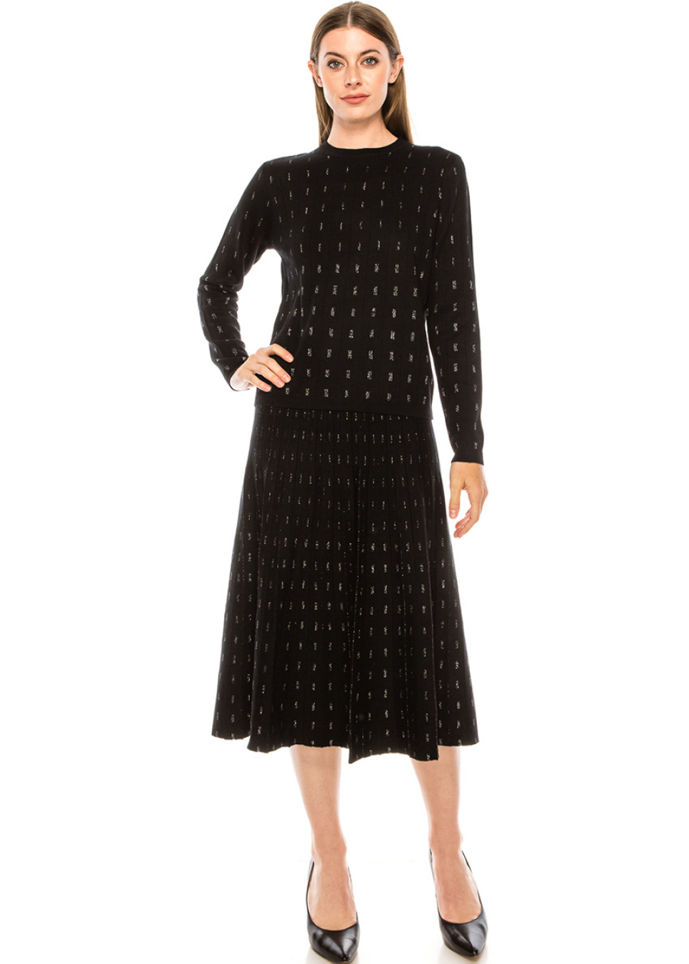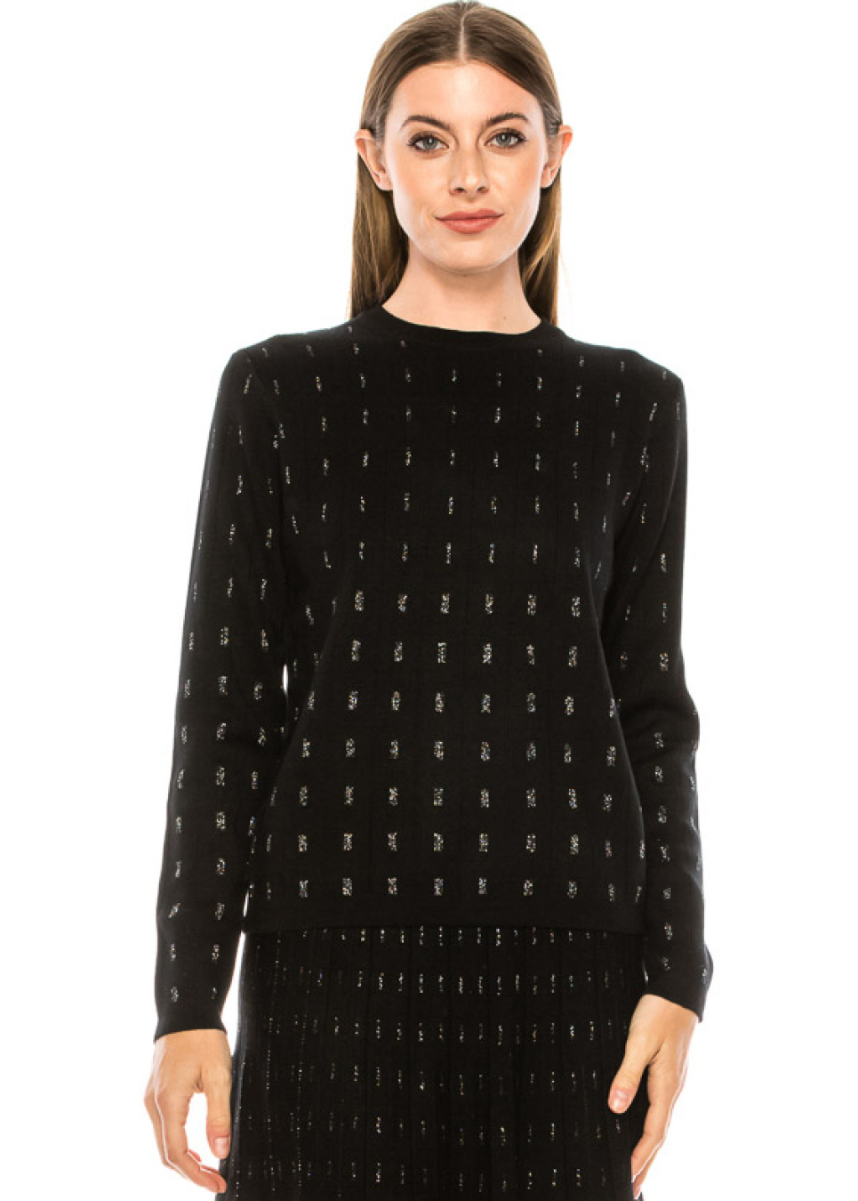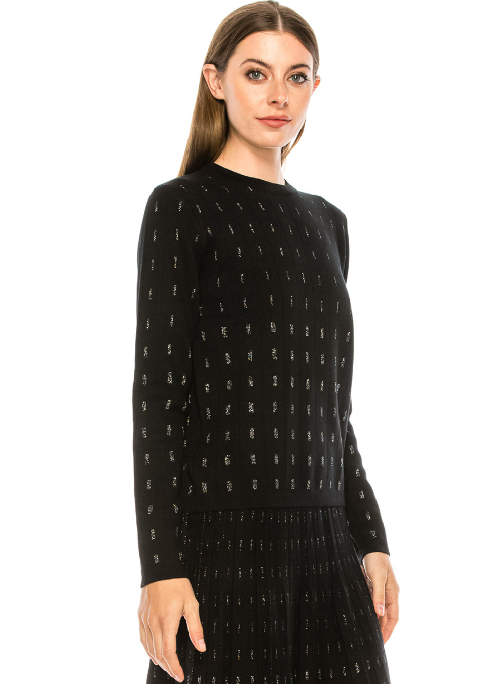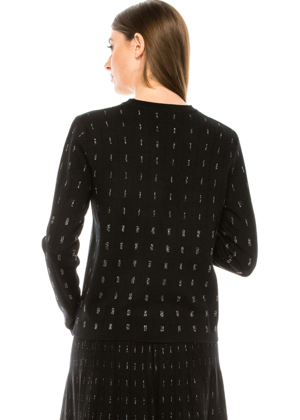 Fed up with all-black ensembles but yet keen on maintaining a subdued appearance? This chic, loose-fitting sweater is worth a try. It's loose enough that it won't impede your motion, yet thick enough that you won't get cold. Embellishing the fabric with a hint of glitz is a silver lurex geometric design.