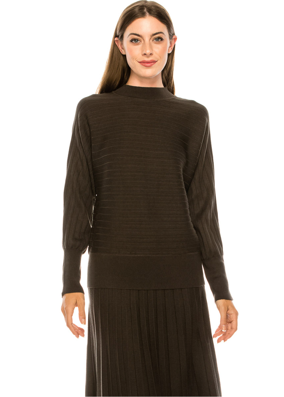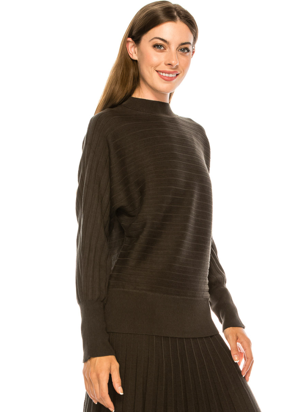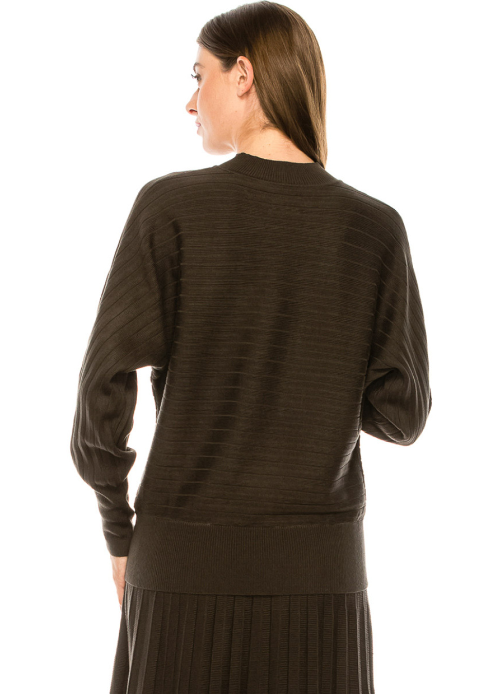 Batwing sleeve ribbed sweater in olive