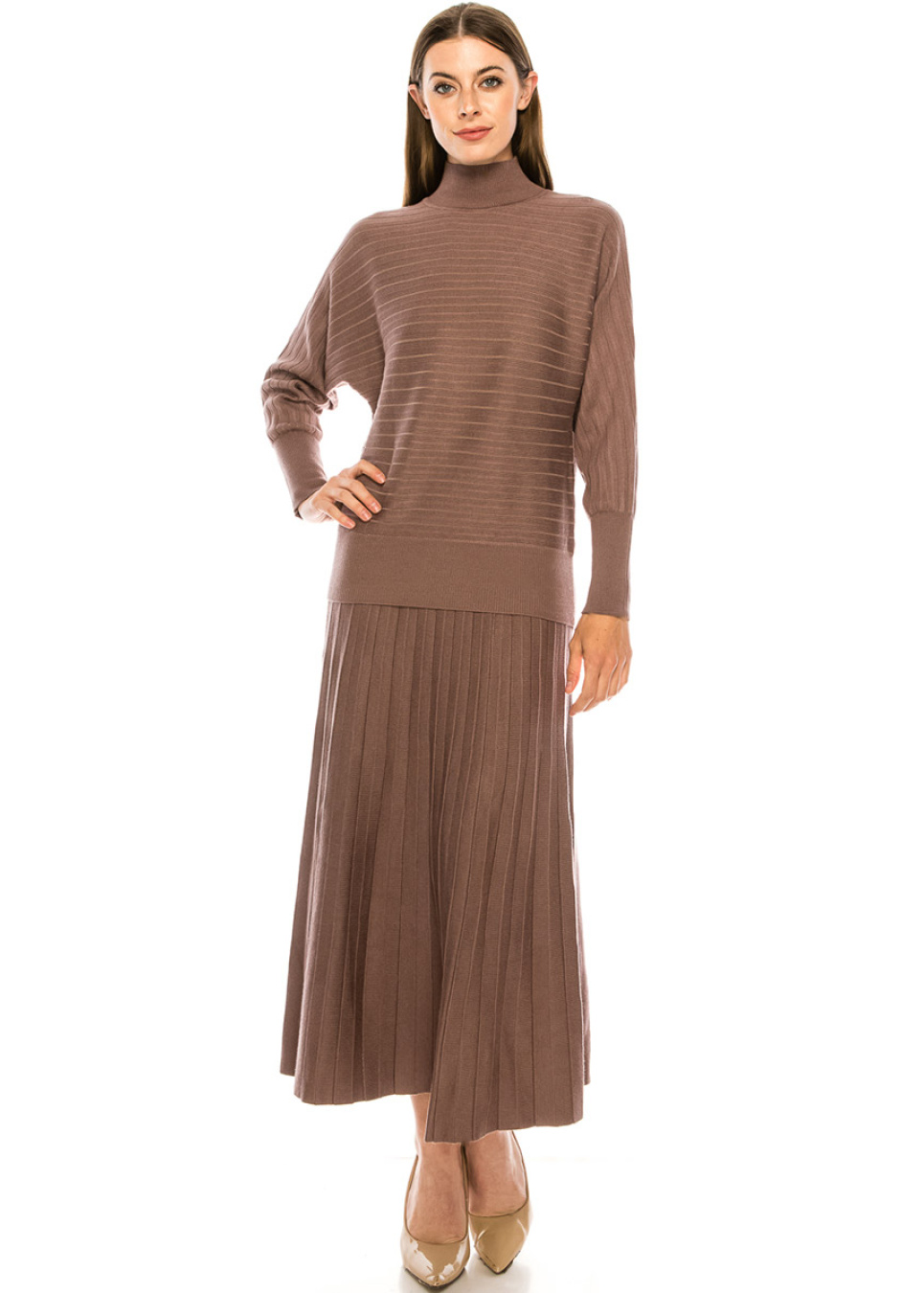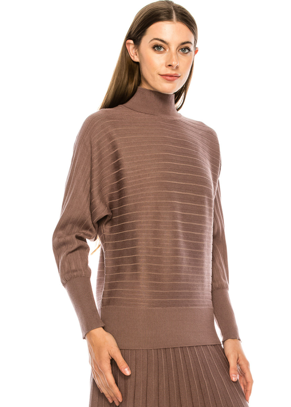 Batwing sleeve ribbed sweater in purple