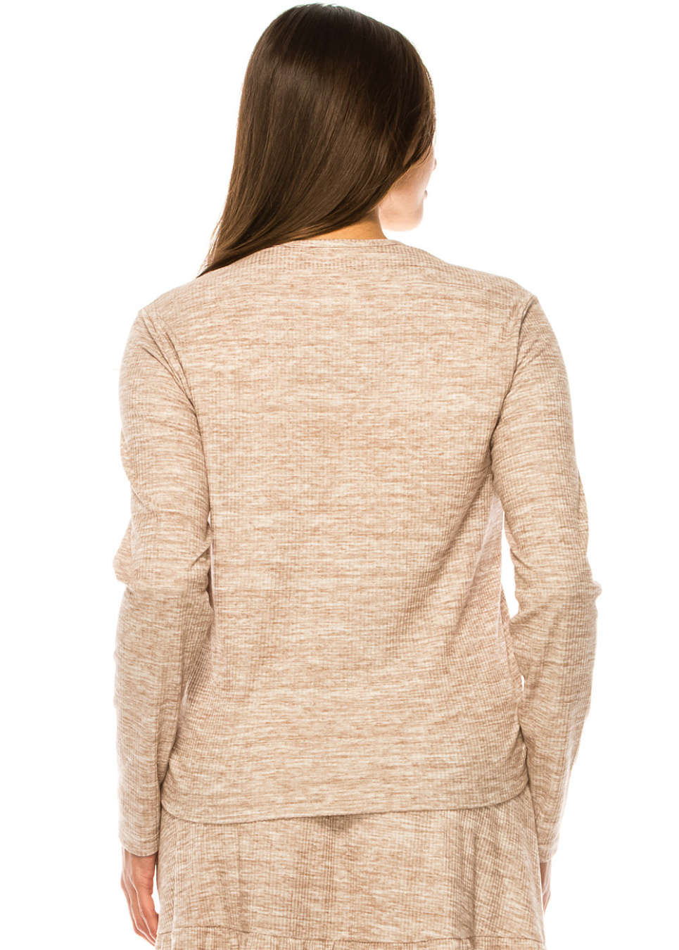 Trendy Camel Dropped Shoulder Rib Knit Cardigan