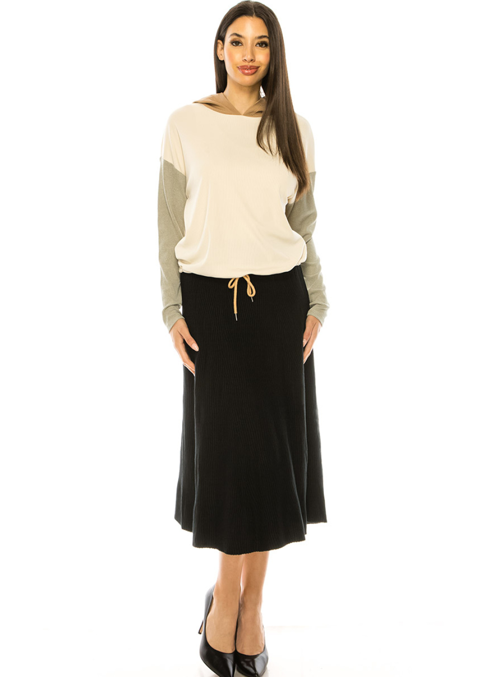 Black Ribbed Midi Skirt with Colorful Streaks