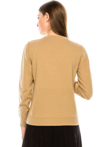 This classy sweater has everything to win your heart. Basic color and timeless cut go with soft, high-quality fabric and ribbed edges for extra comfort. Two rows of buttons add a modern twist.