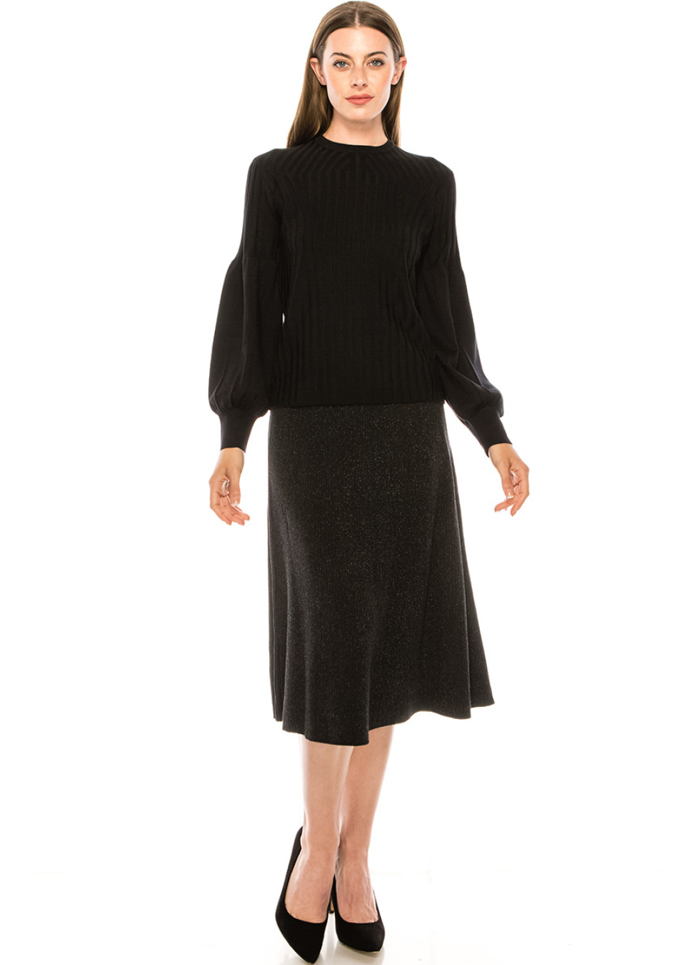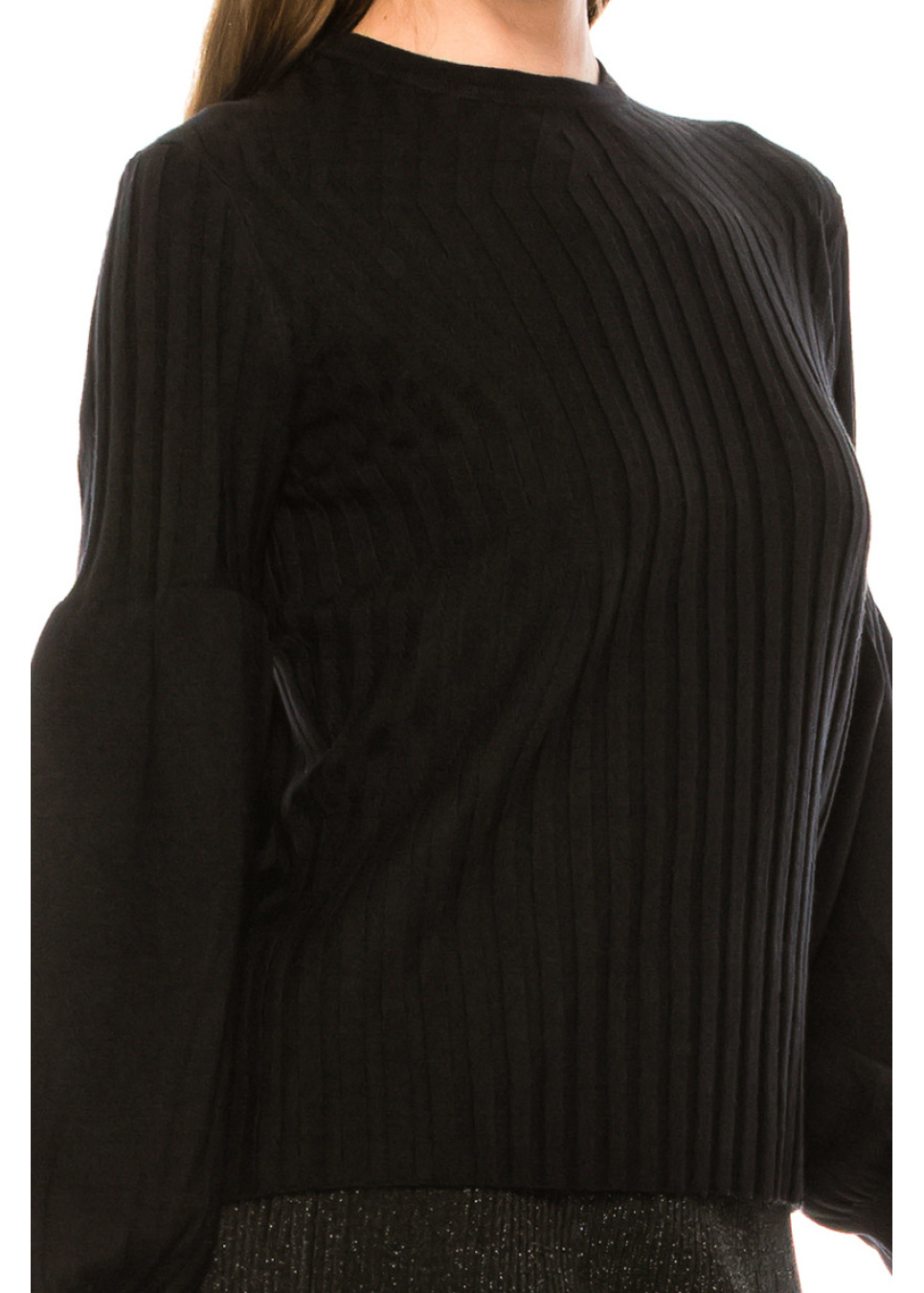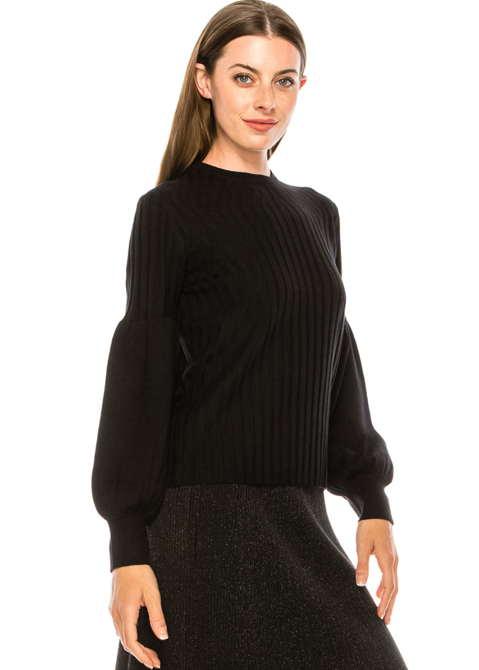 A basic color, classic cut, and bishop sleeves create a feminine silhouette and charm of this sweater. The ribbed texture provides extra comfort and a perfect fit.
