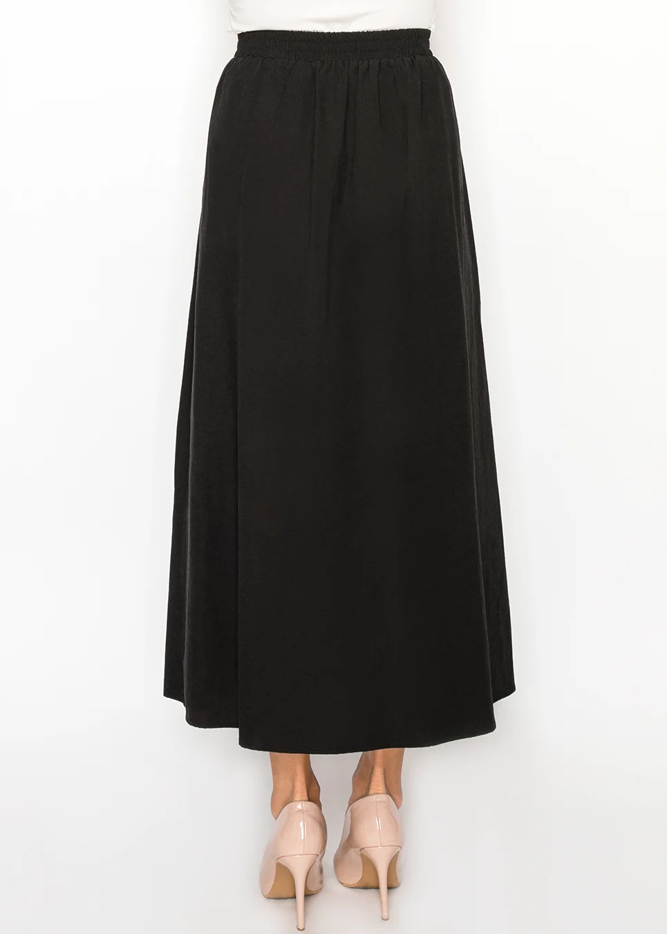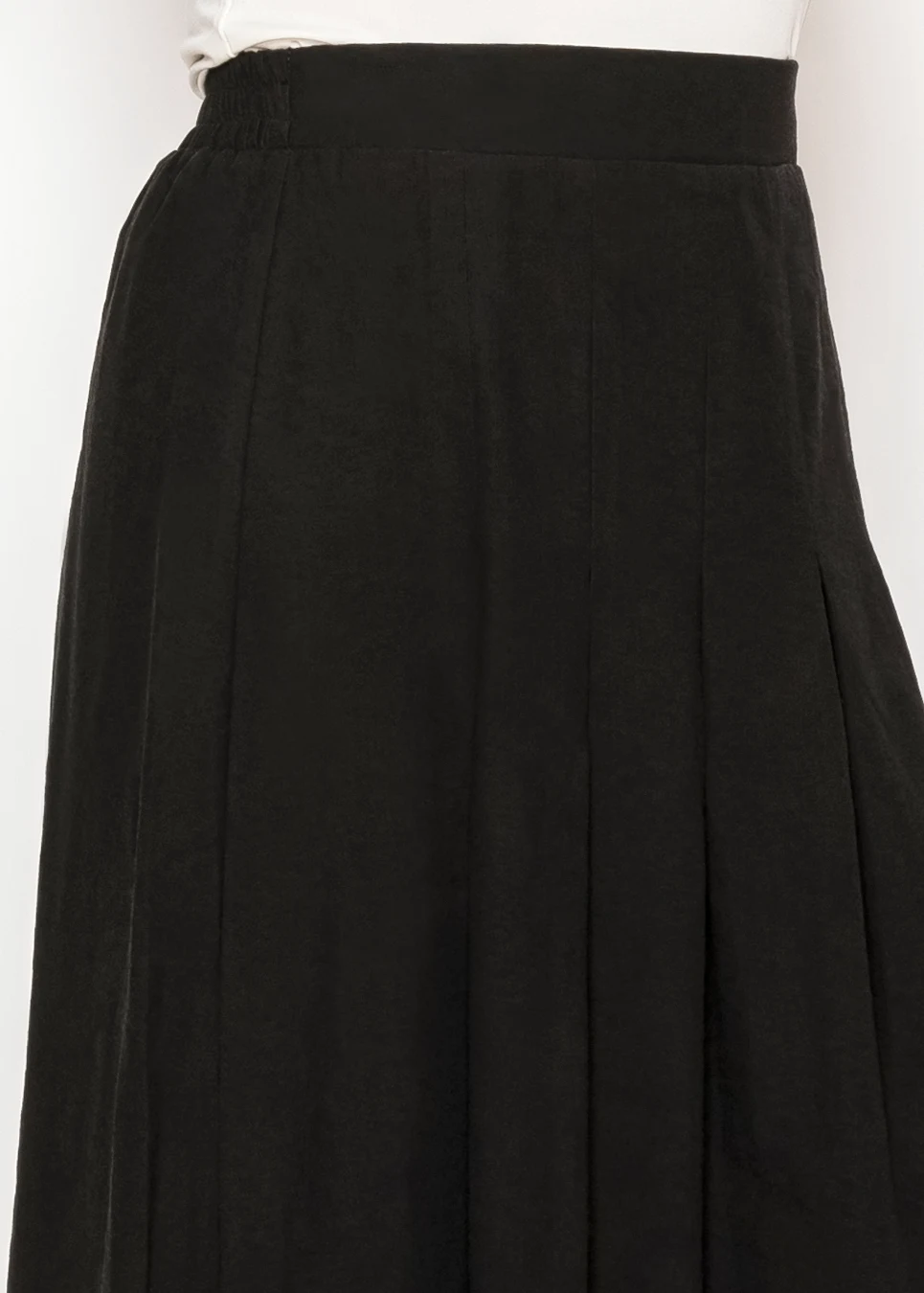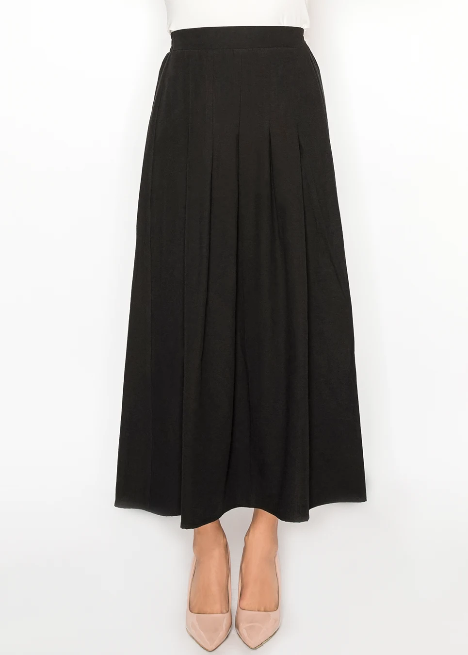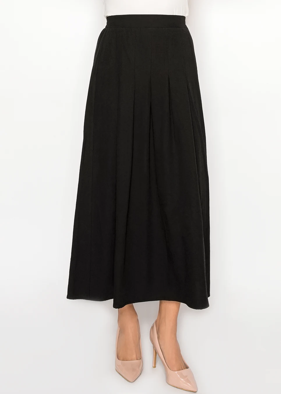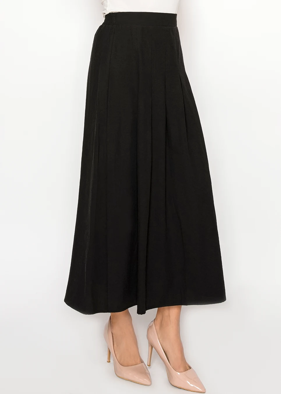It doesn't cling. It doesn't pull at the waist by noon. It doesn't need ironing after you sit down for two hours. What it does: deep box pleats, full midi sweep, elastic waist that stays hidden, cotton blend that breathes. Sometimes knowing what a skirt isn't tells you everything you need to know.