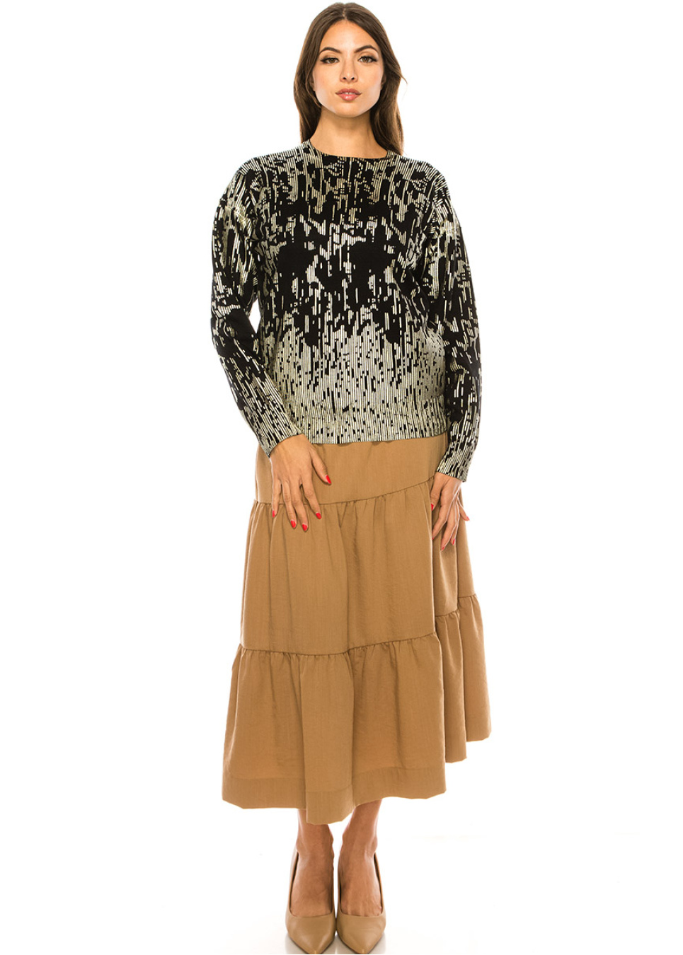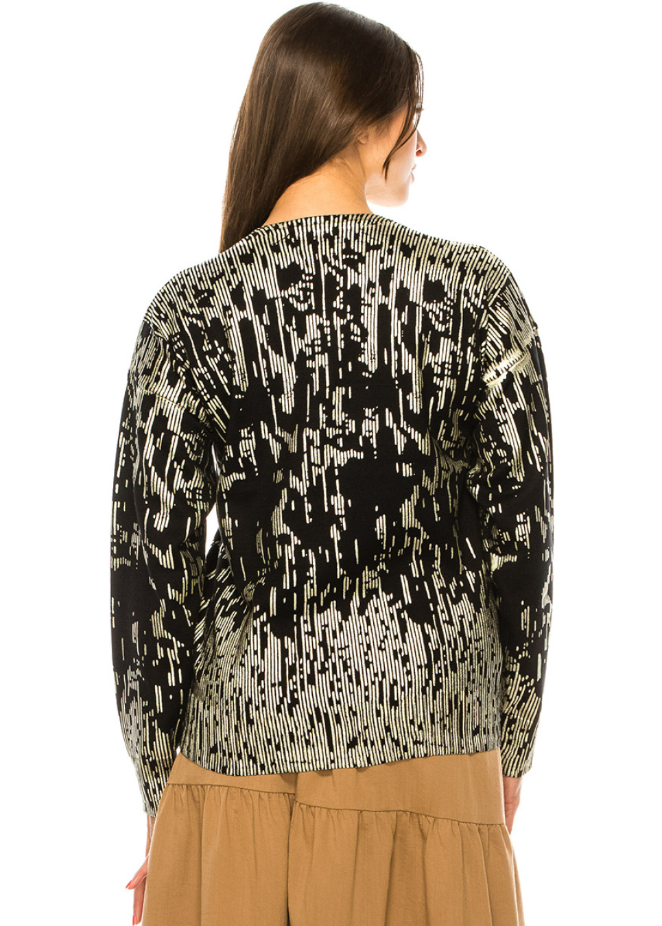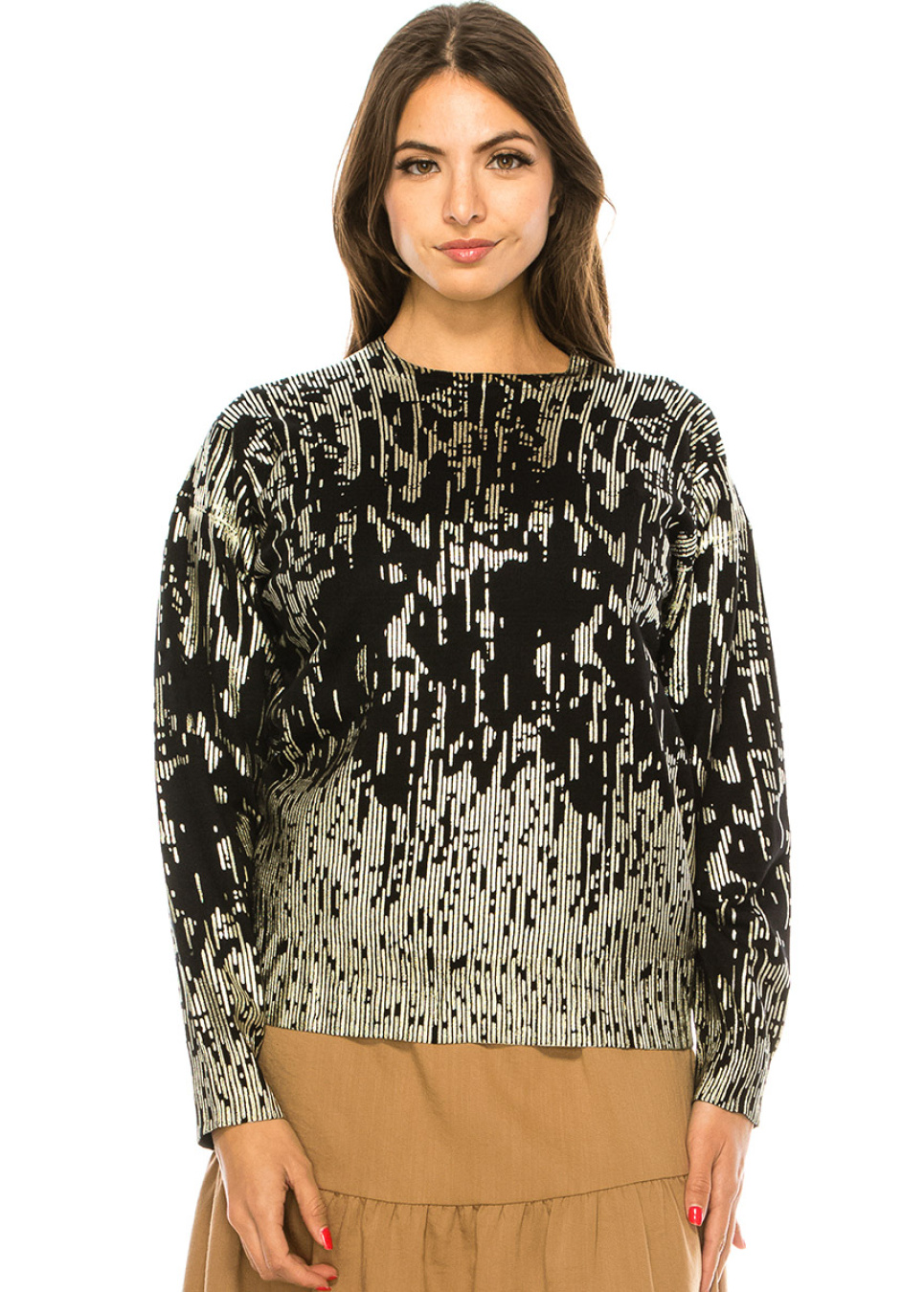 Add some sparkle to your spring wardrobe with this stunning black sweater. The bold, glittery stripes create a glamorous and eye-catching look, while the soft and lightweight fabric keeps you comfortable and cool all day long. With its relaxed fit and versatile design, this sweater is the perfect choice for any frum woman who wants to stay comfortable and stylish during the warmer months.