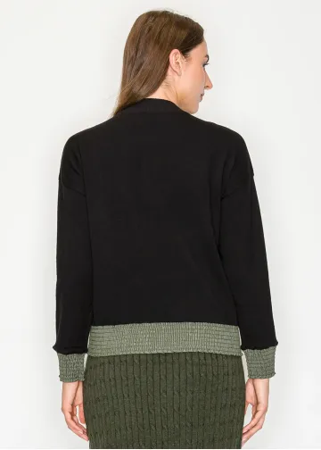 Black and Olive Colorblock Knit Cardigan