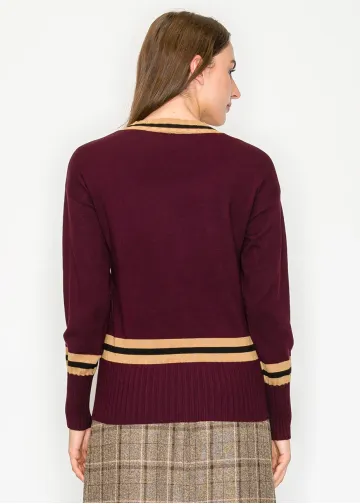 Striped Burgundy & Black Cropped Cardigan