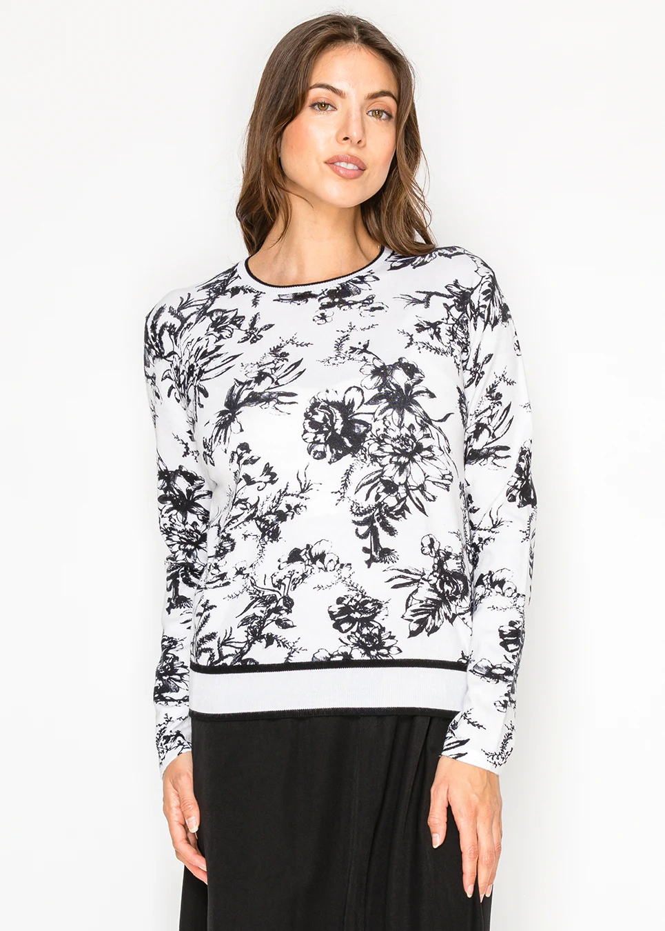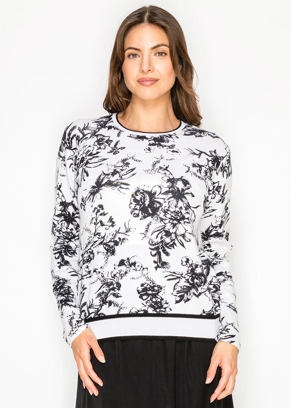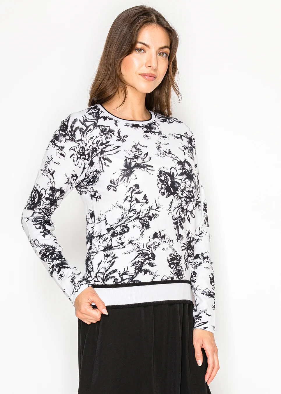 Black and White Floral Knit Sweater