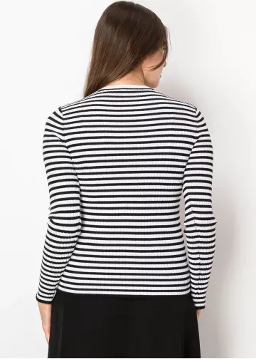 A little preppy, a little timeless—this striped sweater is effortlessly chic. The black and white contrast is bold but easy to wear, and the decorative button placket adds a unique detail.