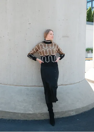 Black Cardigan with Bold Geometric Print
