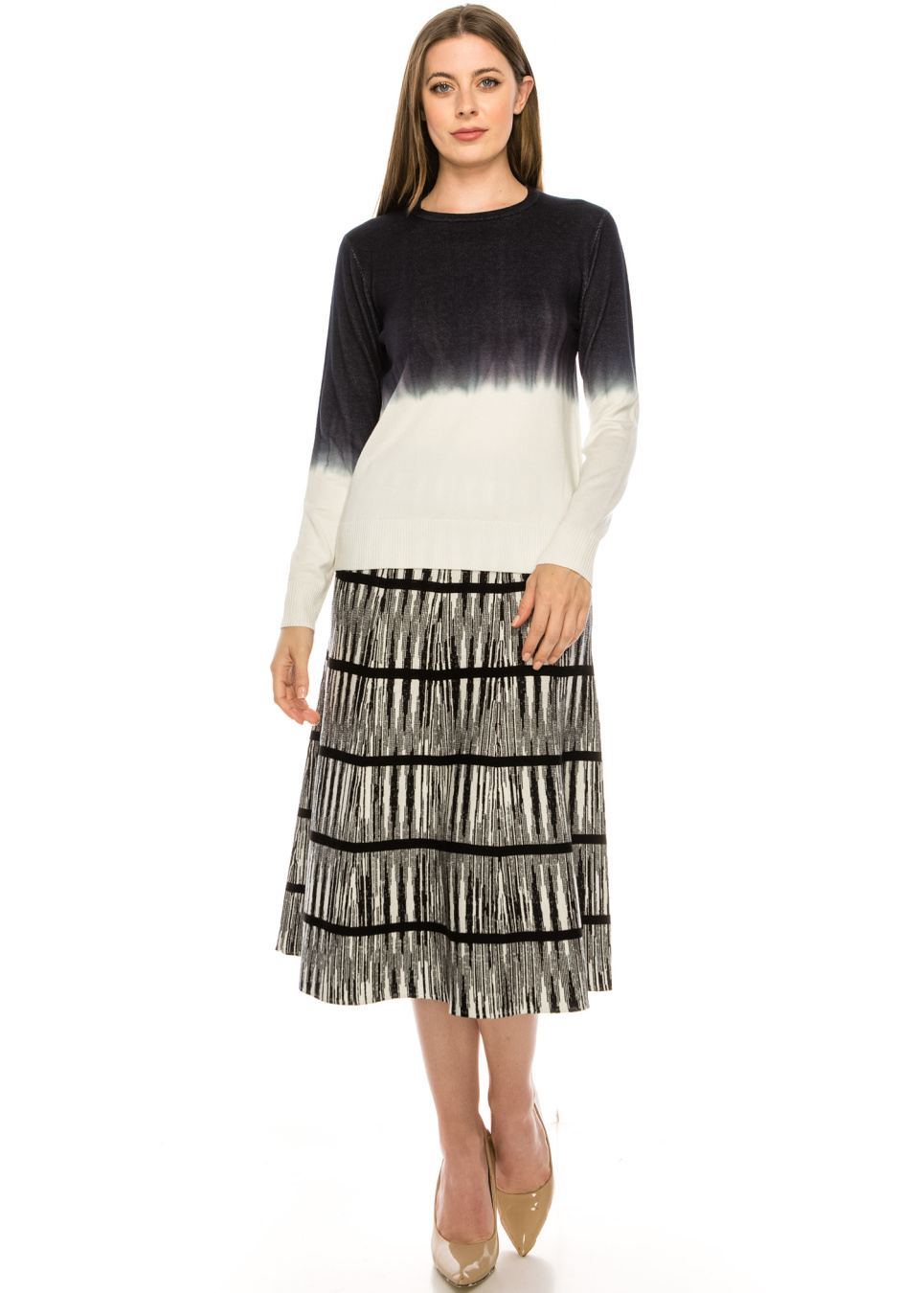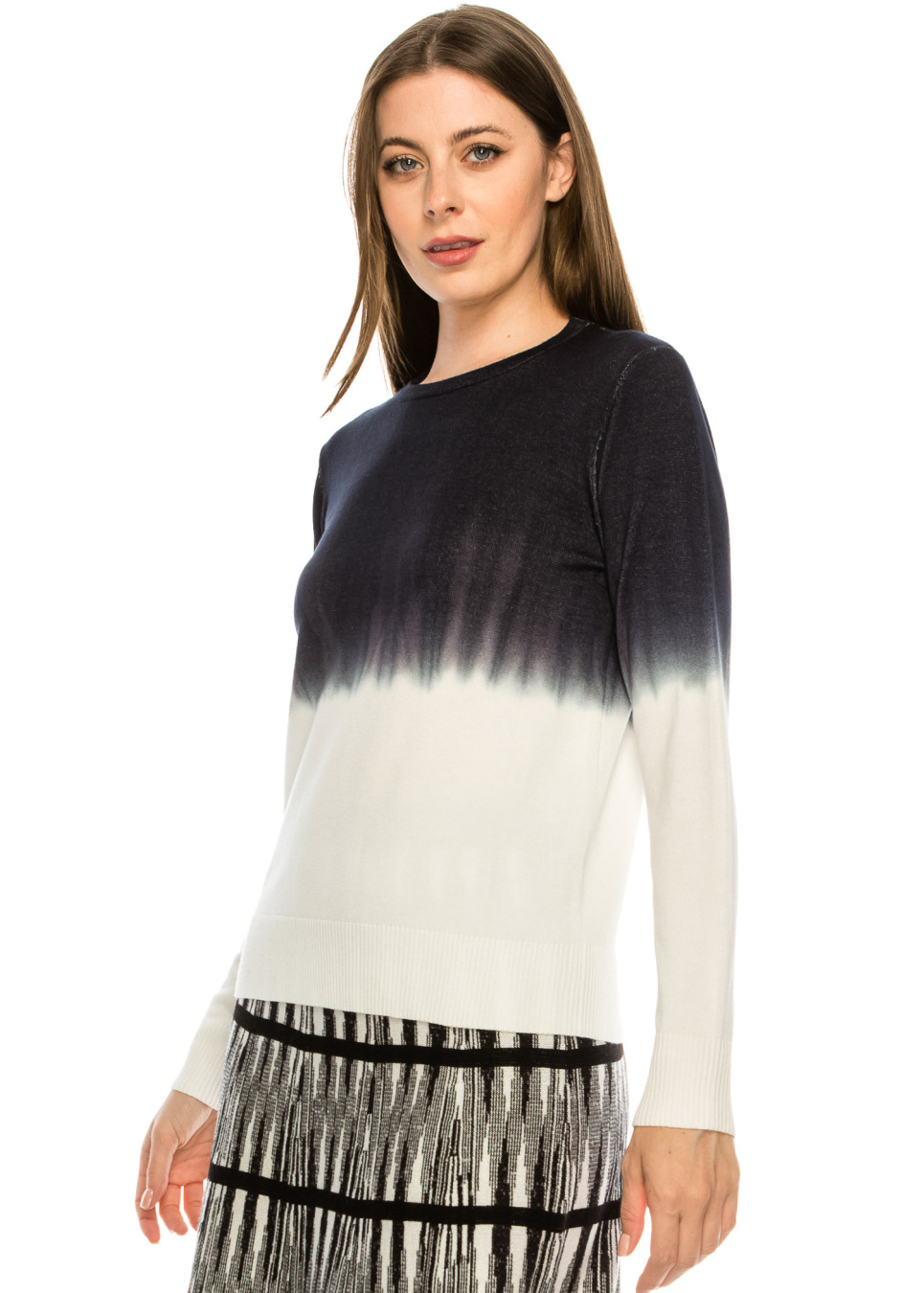 - Knit top with black into white tye-dye