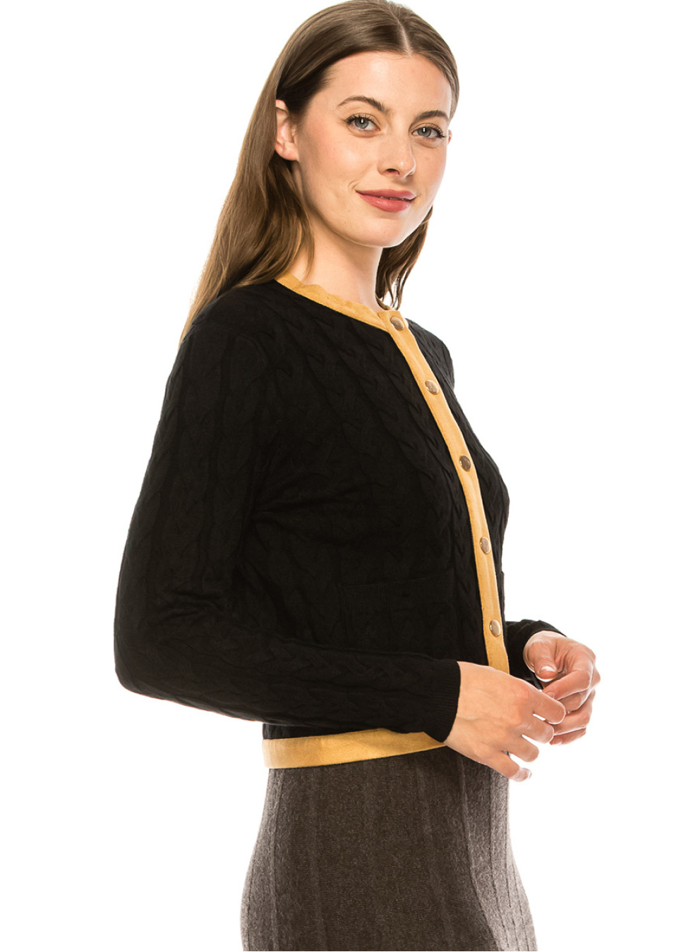 - Braided black cardigan sweater