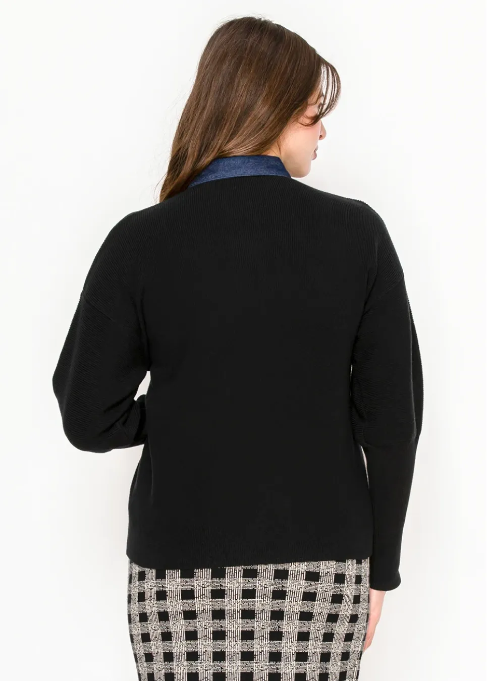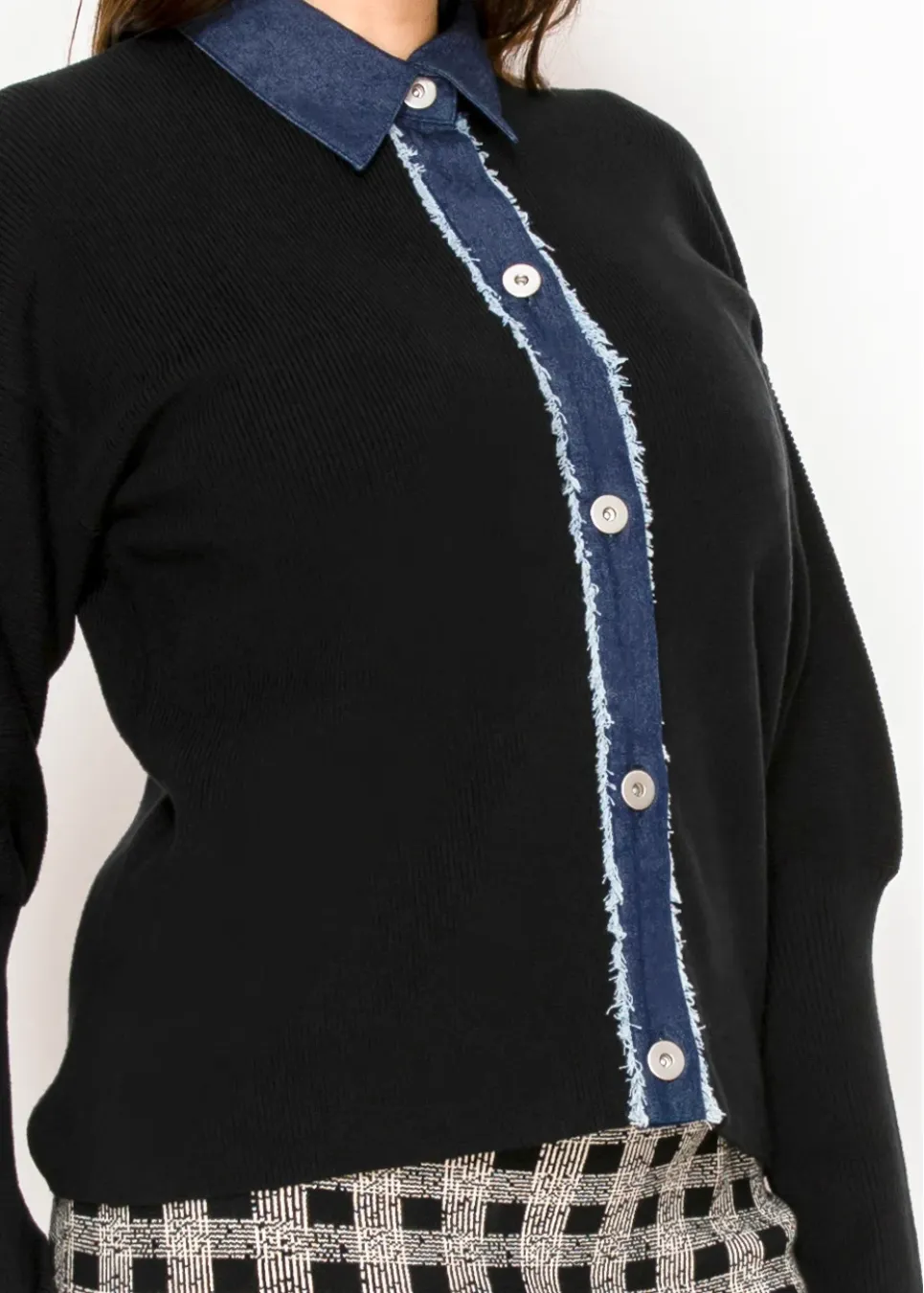 Black Cardigan with Denim Button Placket