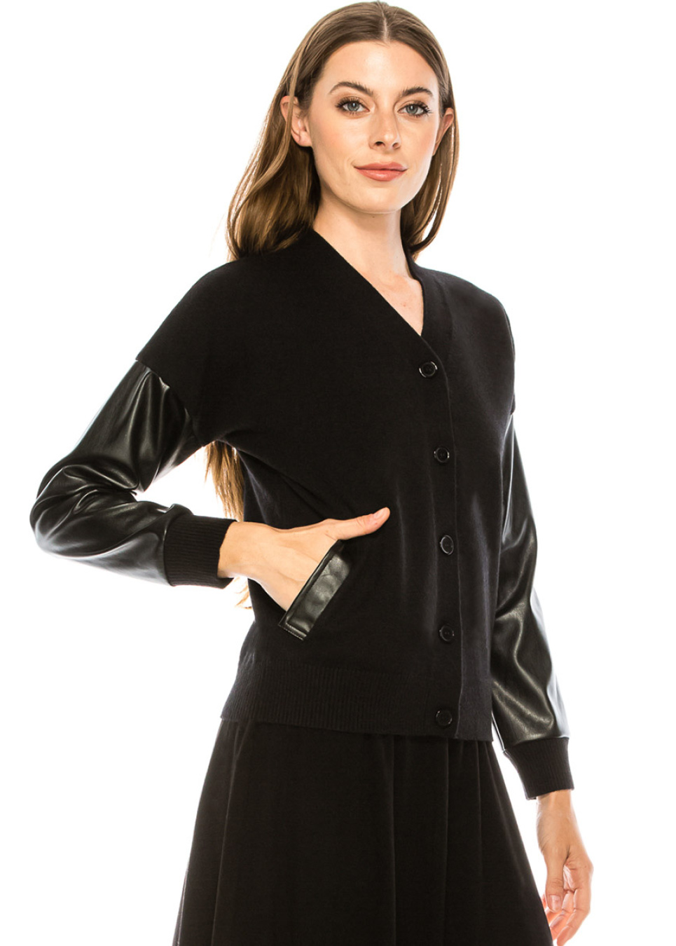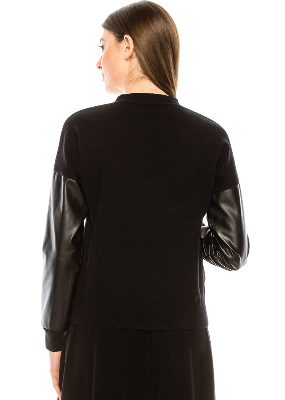 Black cardigan with leather sleeves