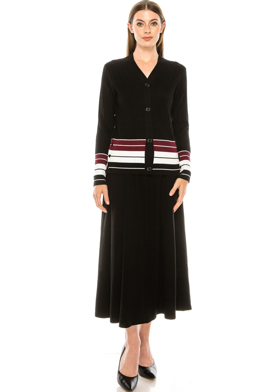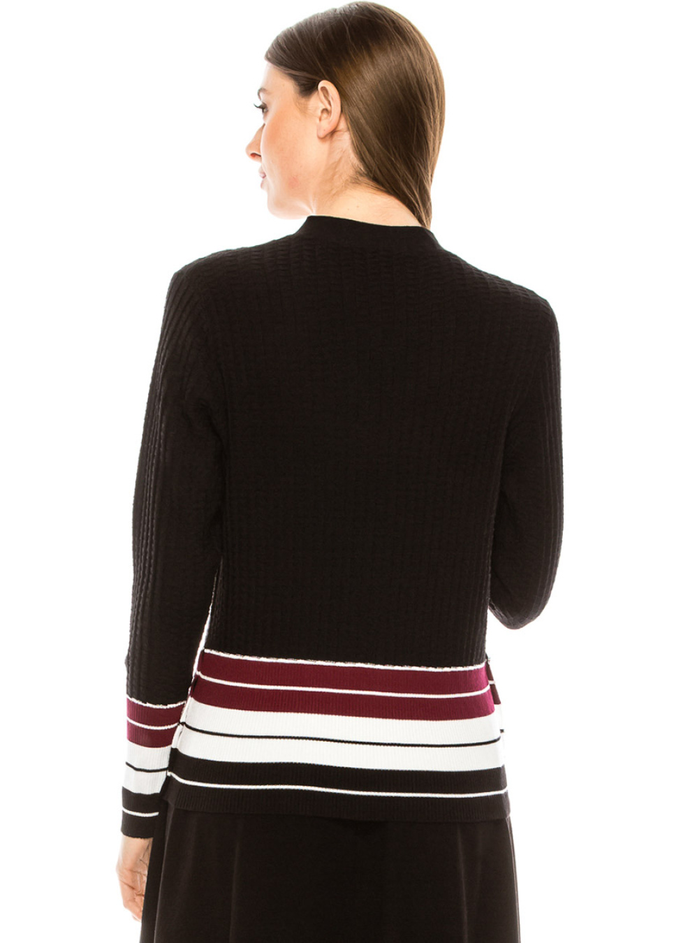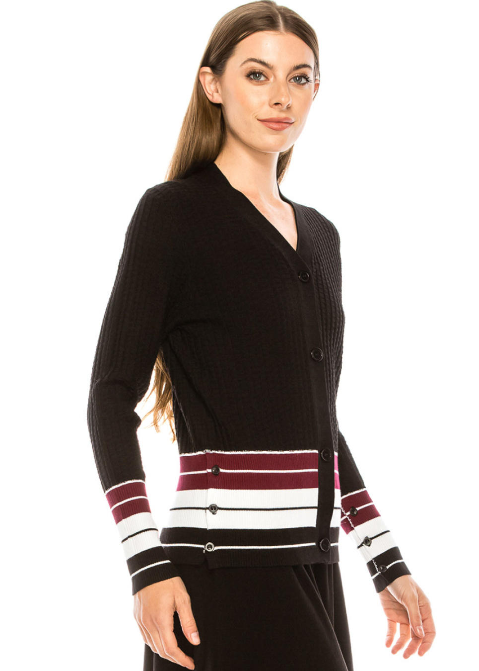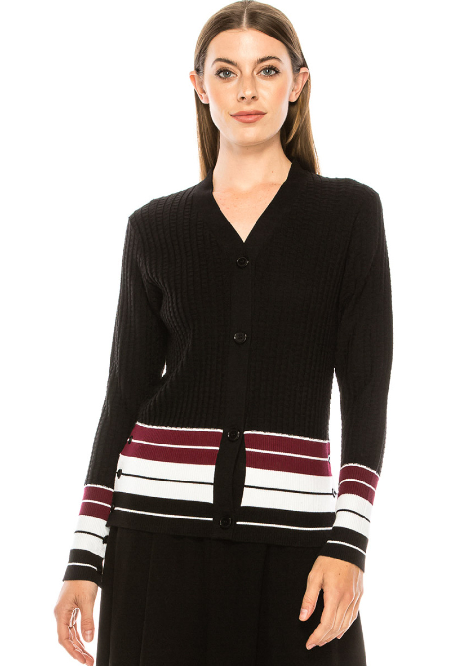 Burgundy Ribbed Cardigan with Stripes