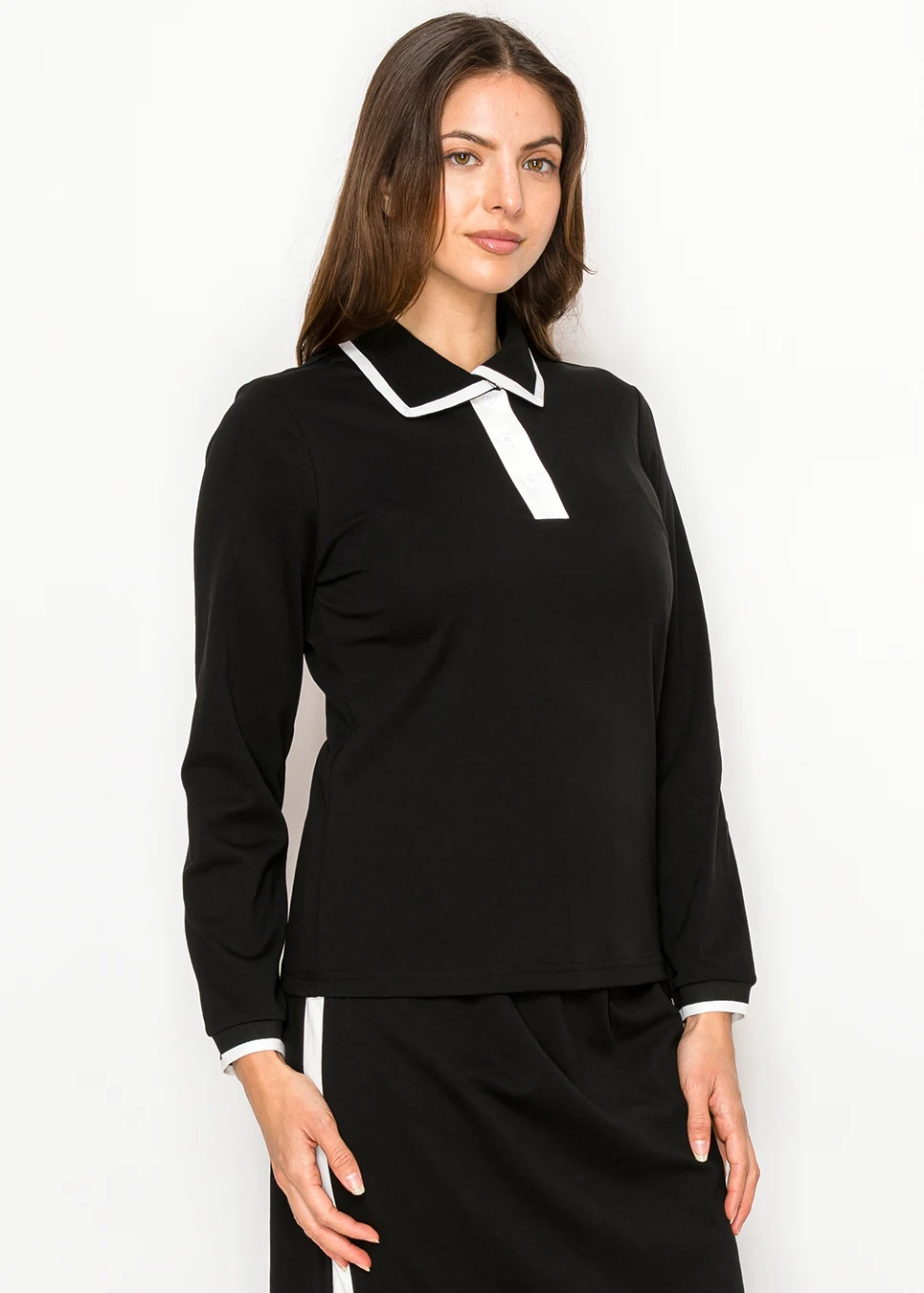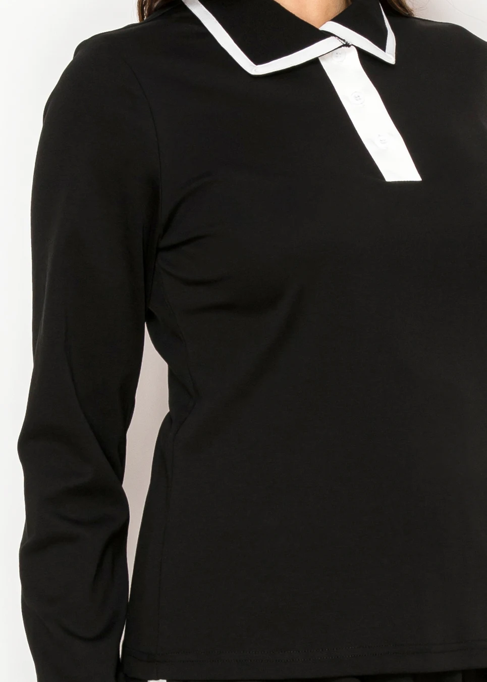 Black Contrast Collar Long Sleeve Cotton Tee