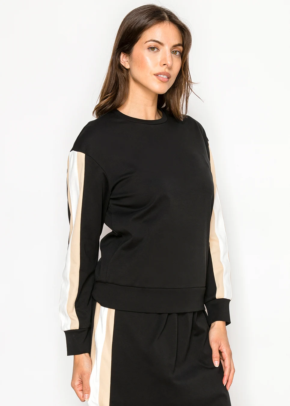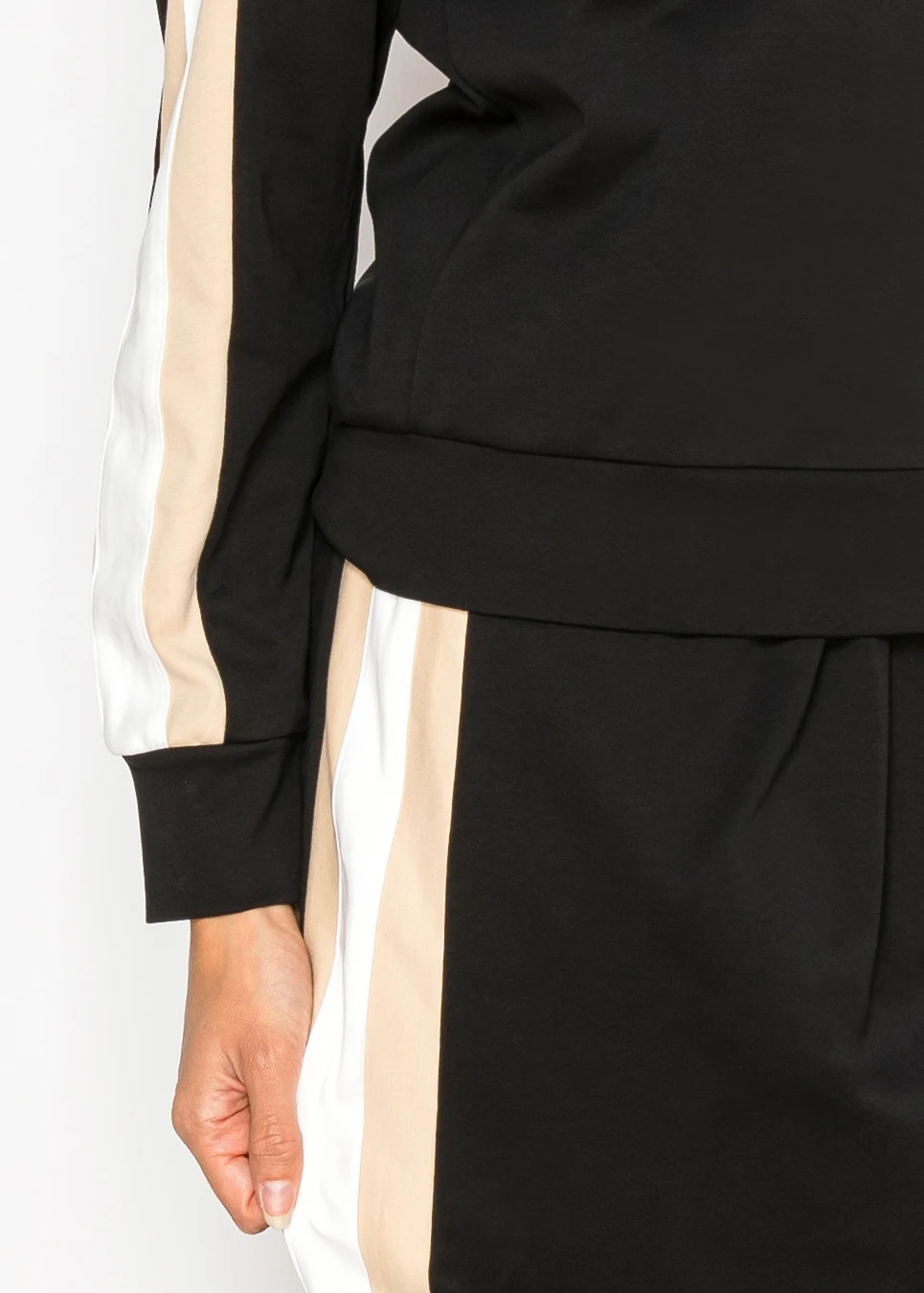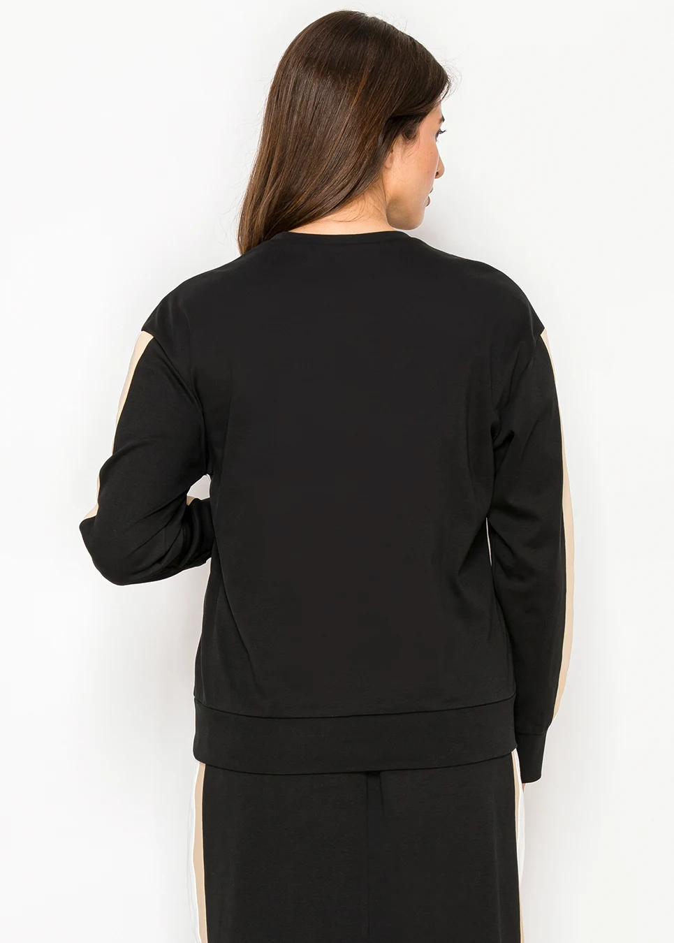 Some pieces just work with everything in your closet — this is one of them. The smooth cotton fabric feels soft on the skin, while the contrast sleeve panels quietly add a sporty edge to the classic black tee.
