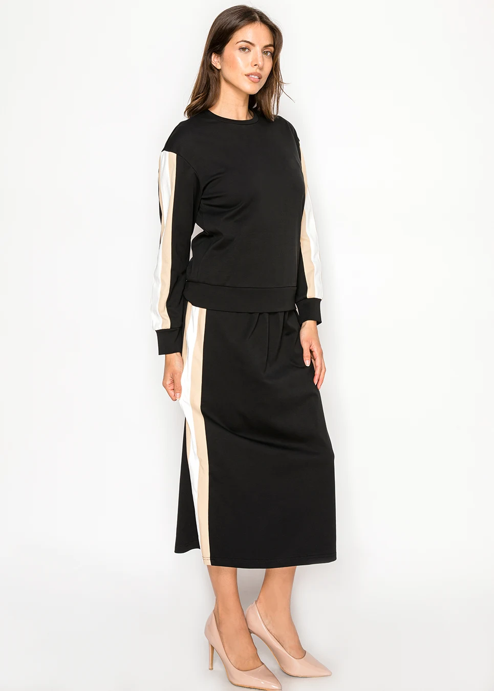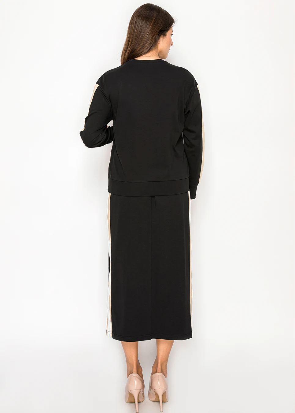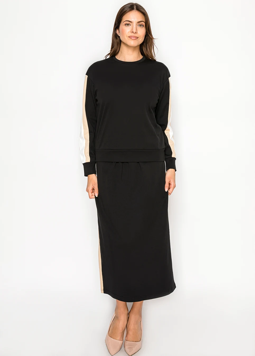 Some pieces just work with everything in your closet — this is one of them. The smooth cotton fabric feels soft on the skin, while the contrast sleeve panels quietly add a sporty edge to the classic black tee.