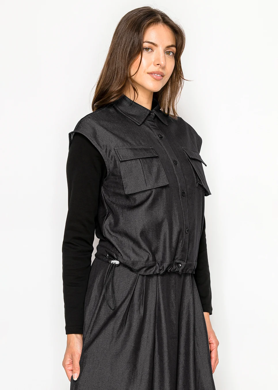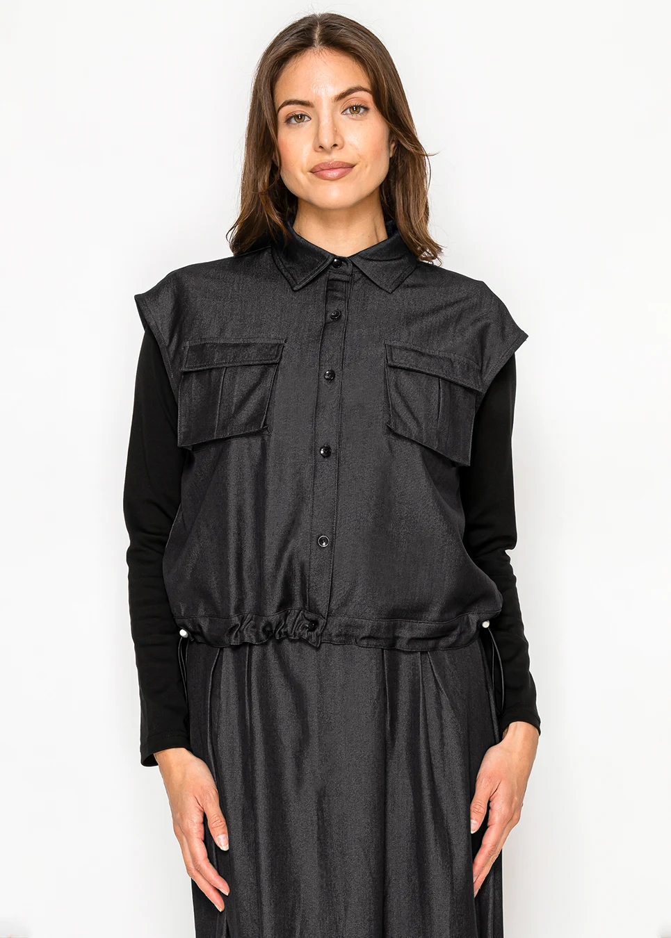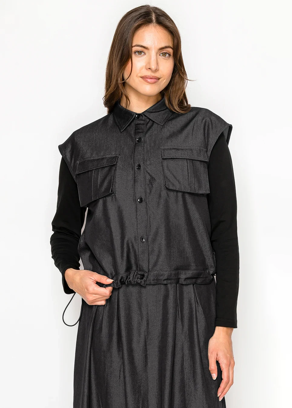 The denim look gives it character. The soft fabric gives it wearability. The shirt collar, real pockets, and drawstring hem give it enough structure to feel intentional. If you're going to add a layering piece to your rotation, it might as well be one that looks like it belongs there.