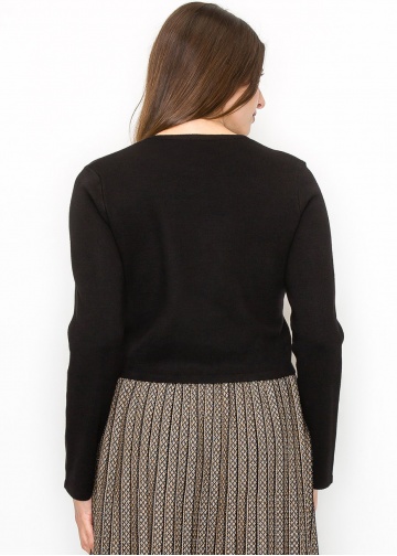 This elegant black cardigan features a double row of buttons for a refined, minimalist look. The cropped design and structured fit make it perfect for layering, adding a polished touch to any modest outfit.
