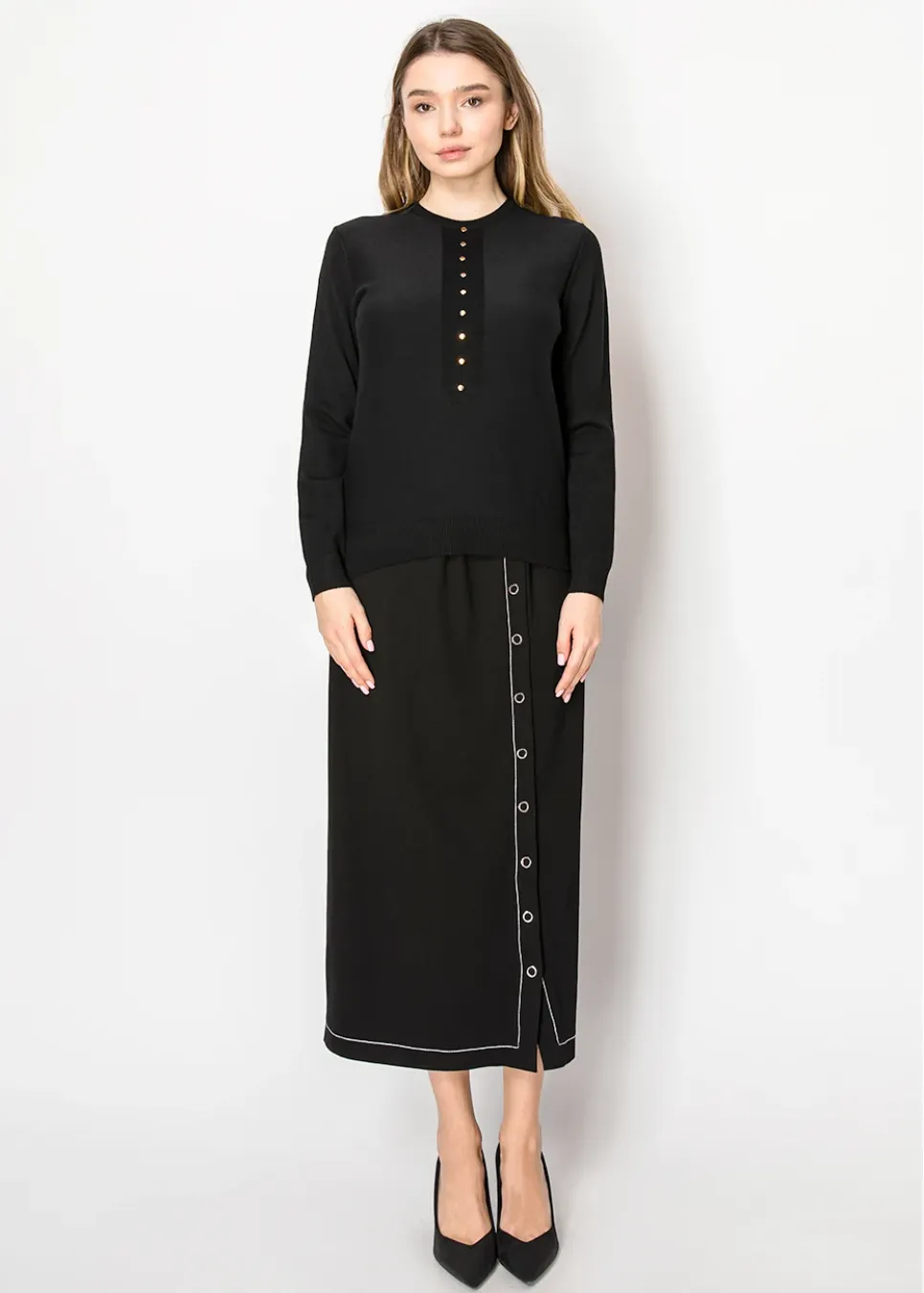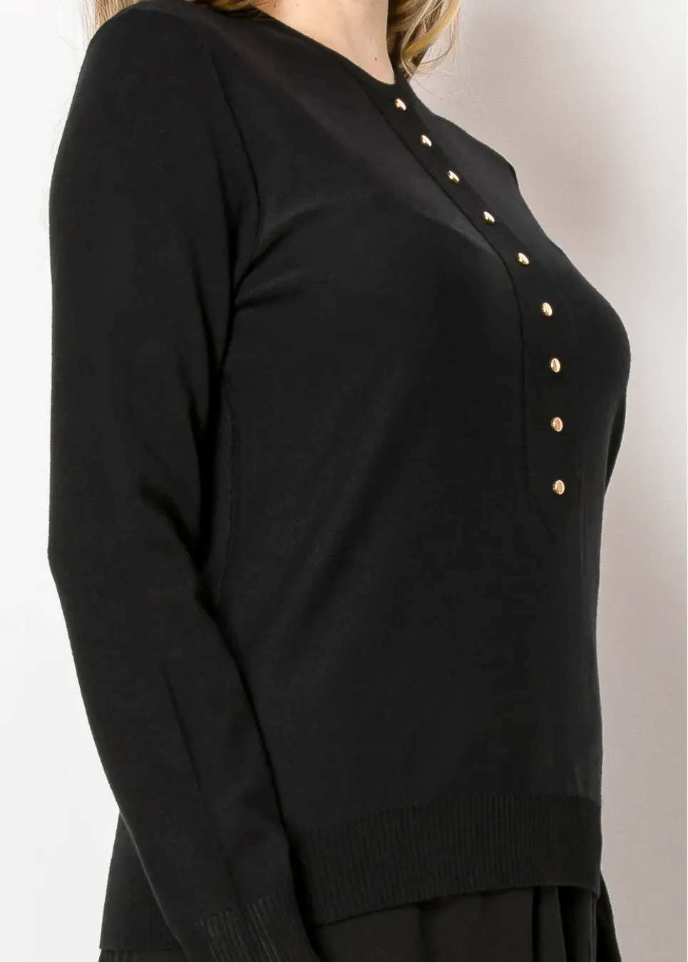 This sweater keeps things simple but adds a little shine with its button trim. Easy to wear and easy to love—it’s the kind you’ll reach for again and again.