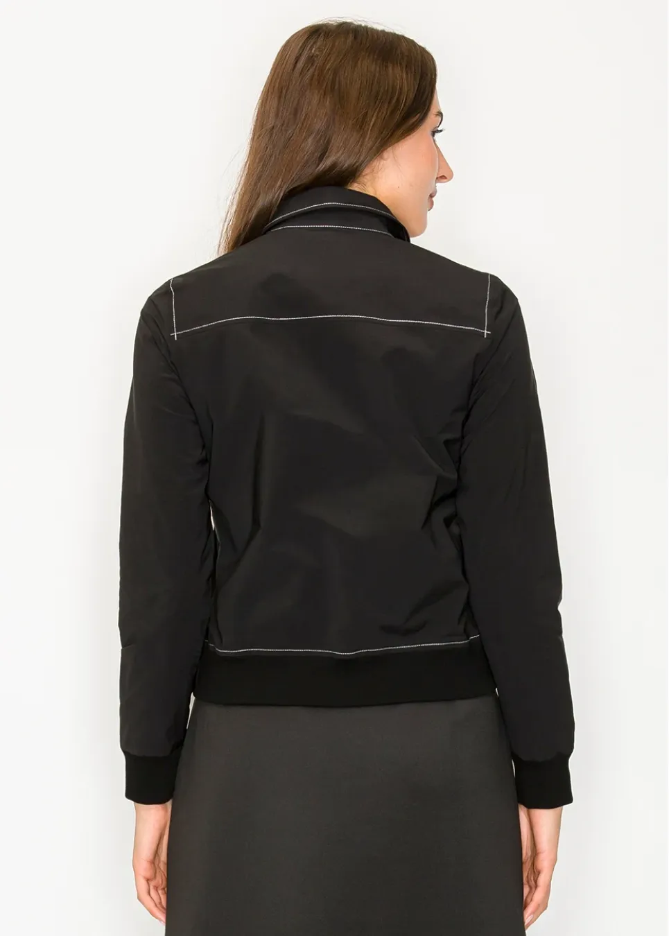 Black long-sleeve shirt jacket with cuffed hem