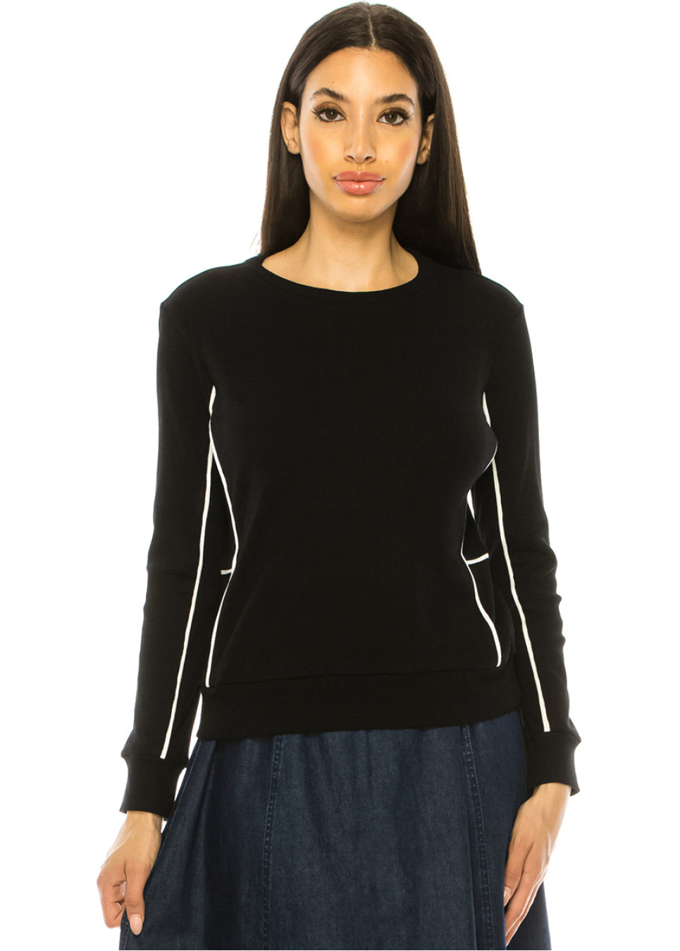Keep it simple and classic with the YAL New York long sleeve t-shirt. The white stripes add a touch of elegance, while the elastic cuffs ensure a comfortable fit. The classic cut makes this shirt perfect for any occasion, whether you're running errands or attending a dinner party.