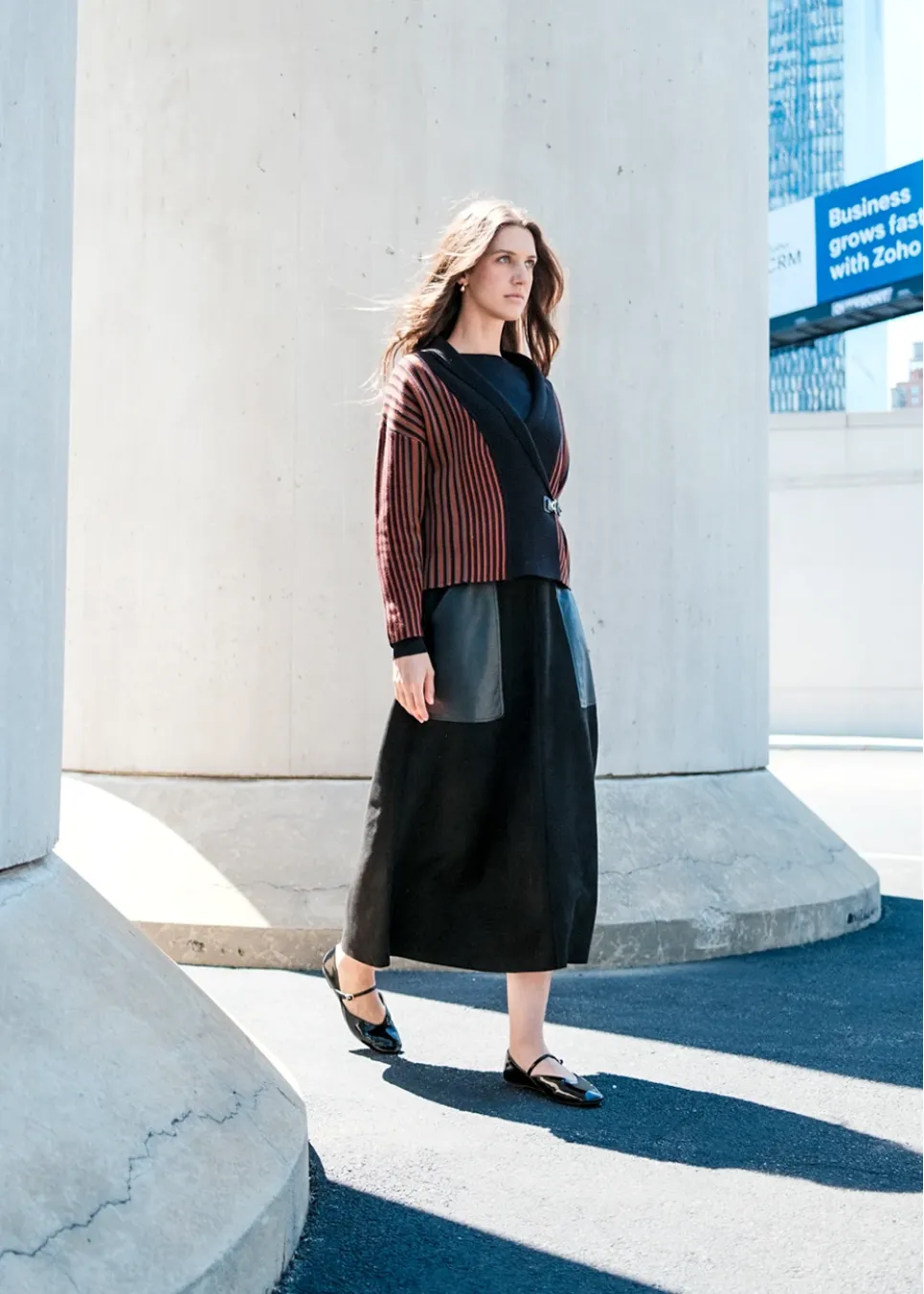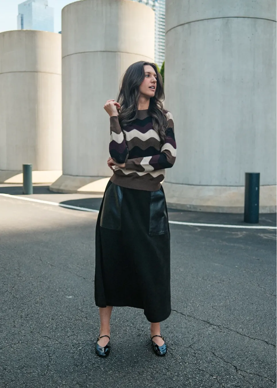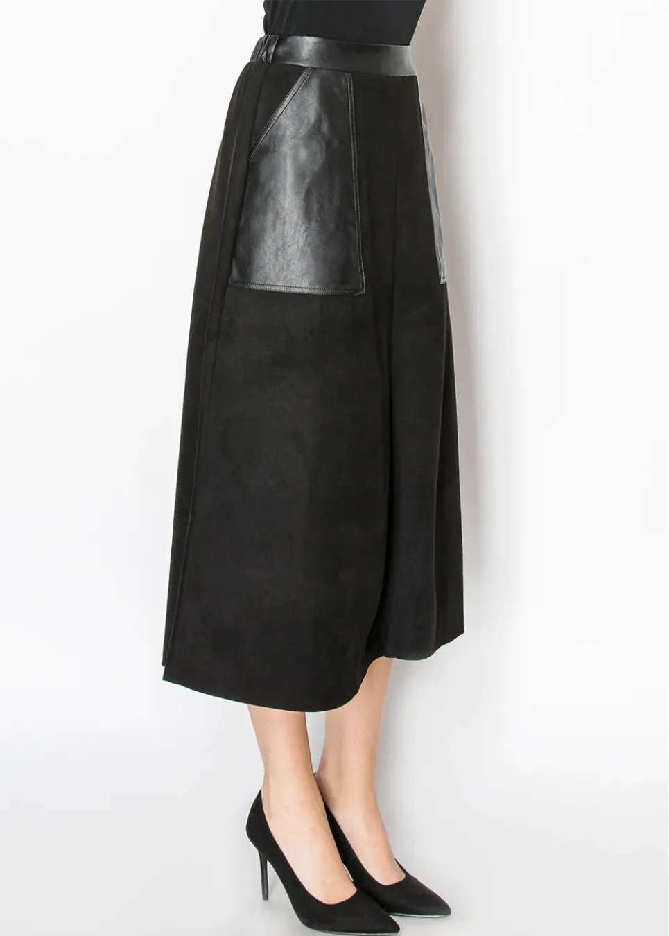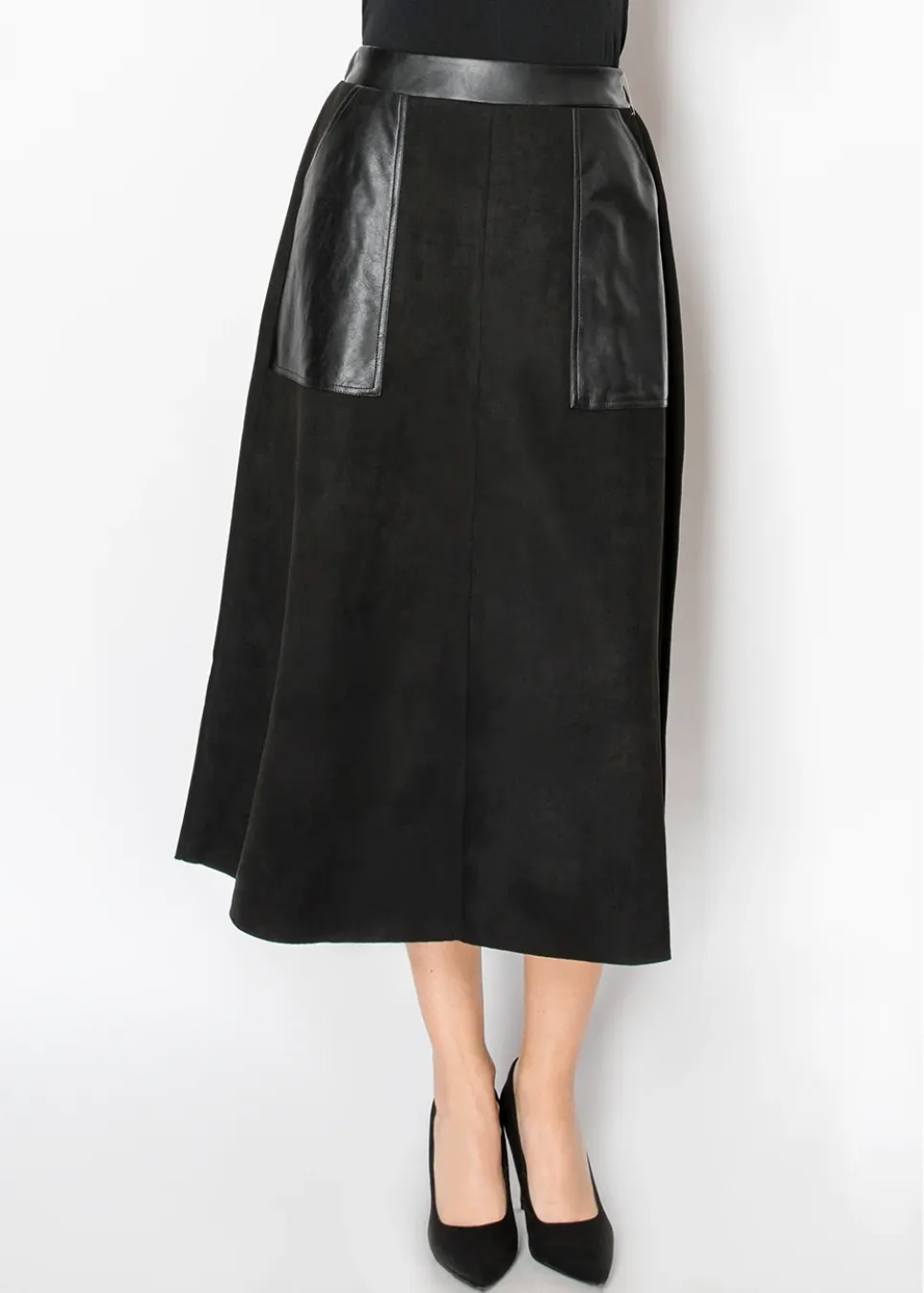 Black Midi Skirt with Contrast Pockets