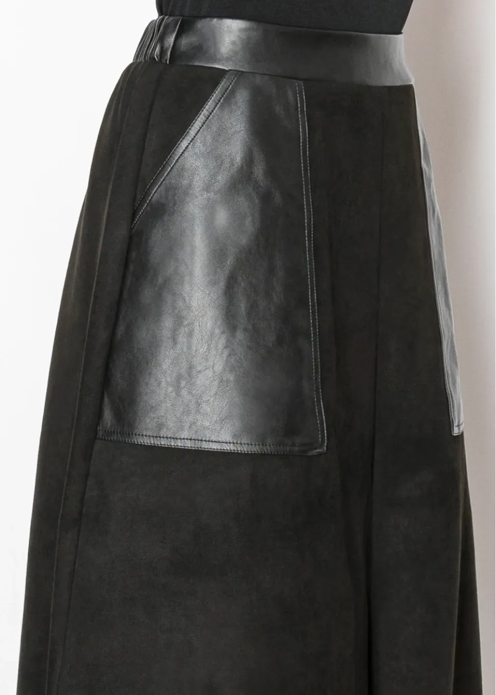A mix of matte and shine gives this skirt a bold, fashion-forward edge. Perfect for pairing with knits, blouses, or your favorite boots.