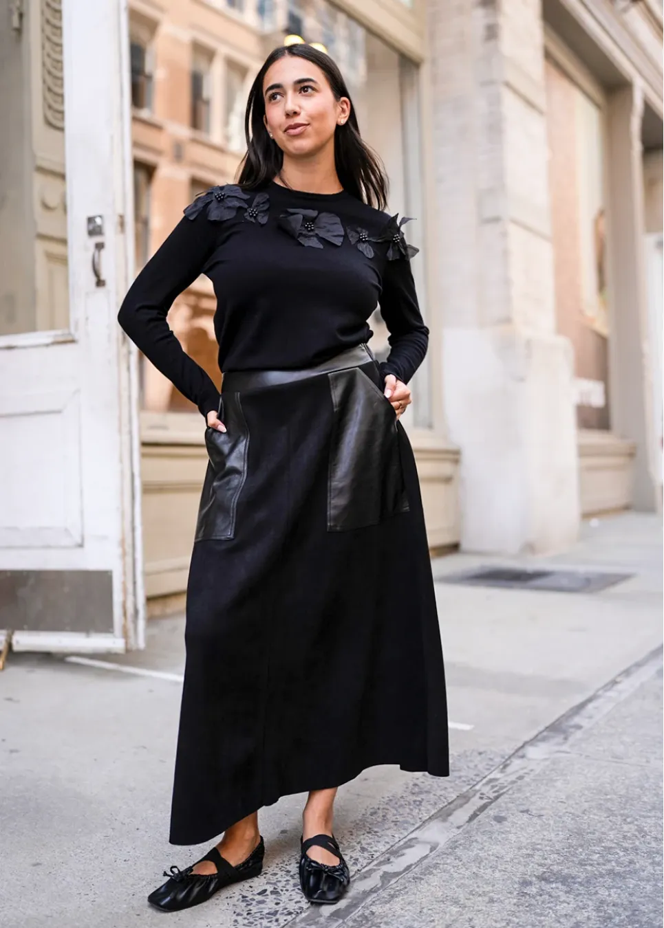 Black Flower Accent Knit Outfit