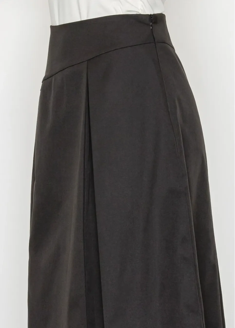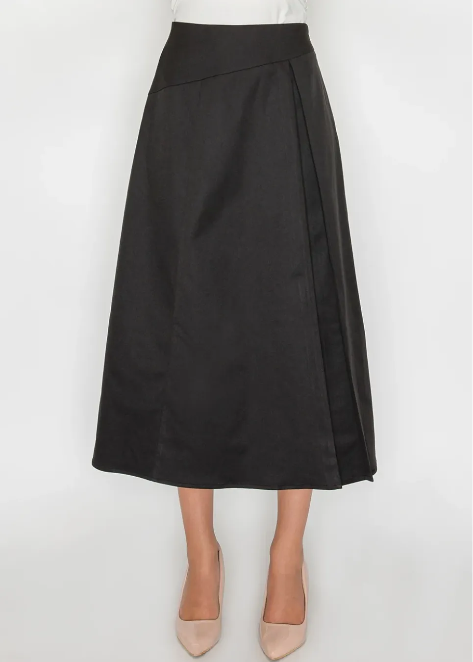 Black Midi Skirt with Side Pleat