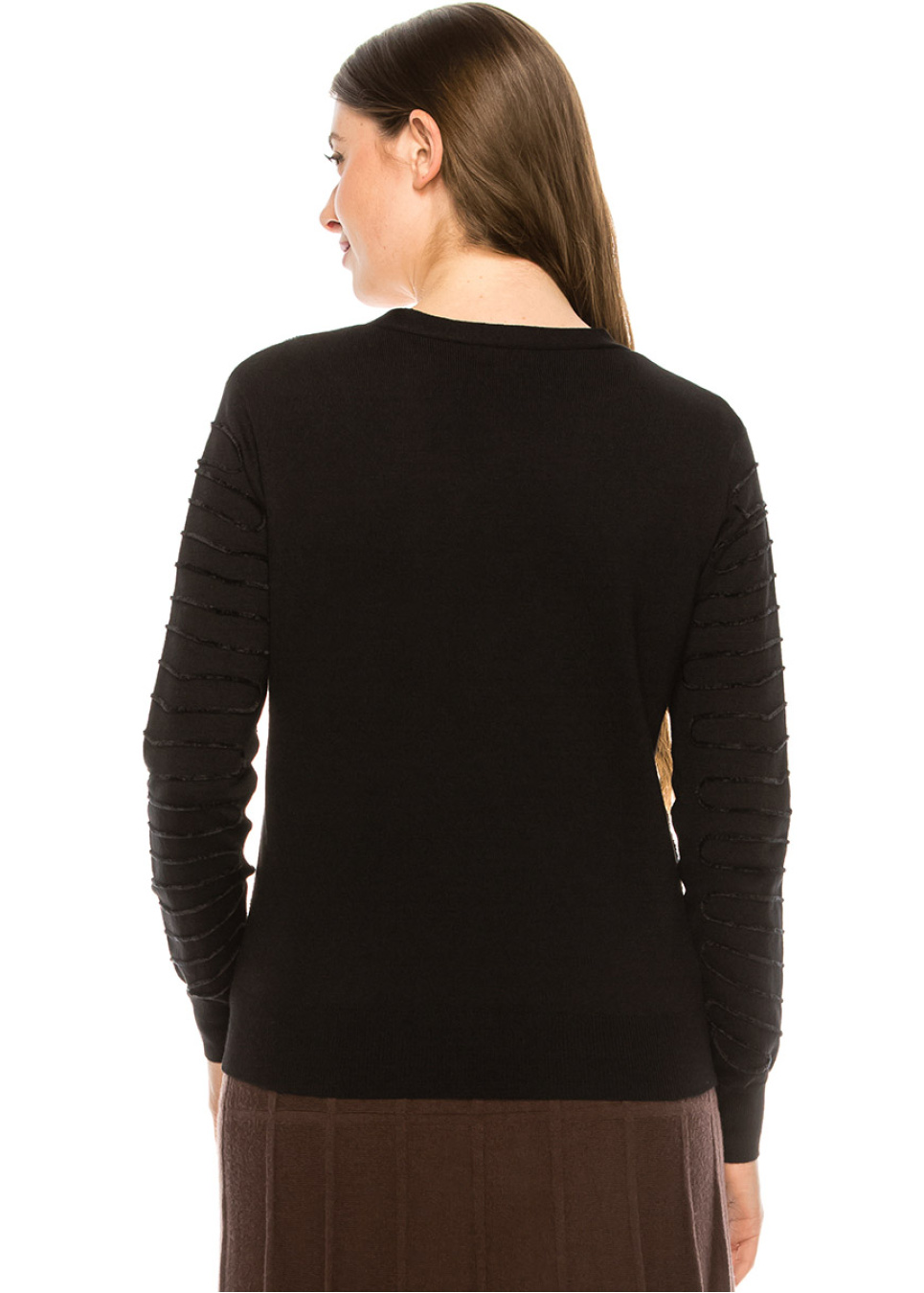 - Black piping detail add texture and dimension to this monochromatic top
