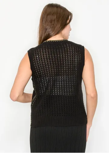 Black Open-Knit Vest with Contrast Trim