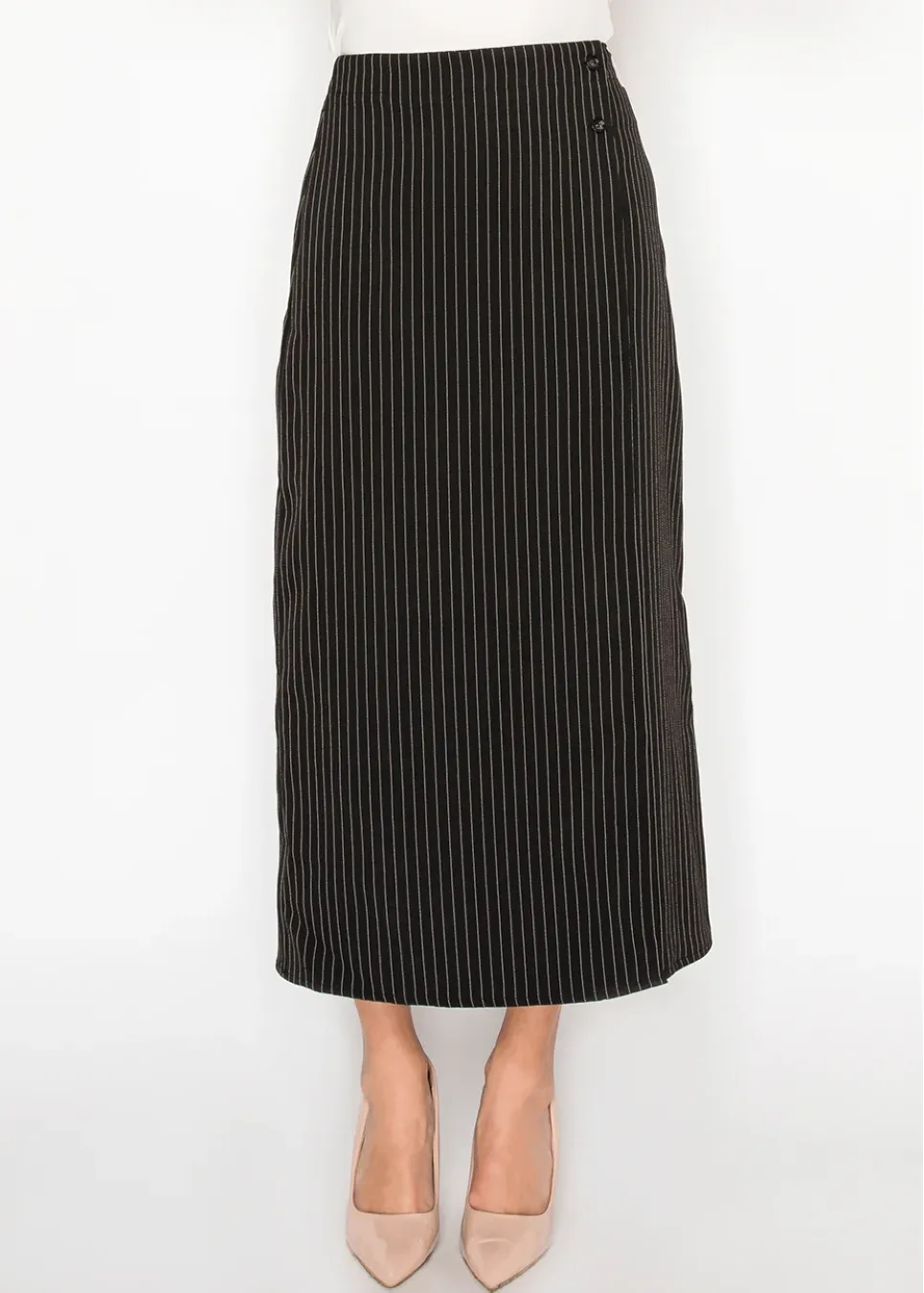 Classic tailoring meets understated elegance in this striped midi. Its refined design makes it a wardrobe staple with lasting sophistication.