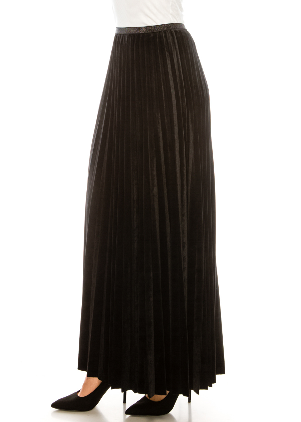 - Black pleated maxi skirt