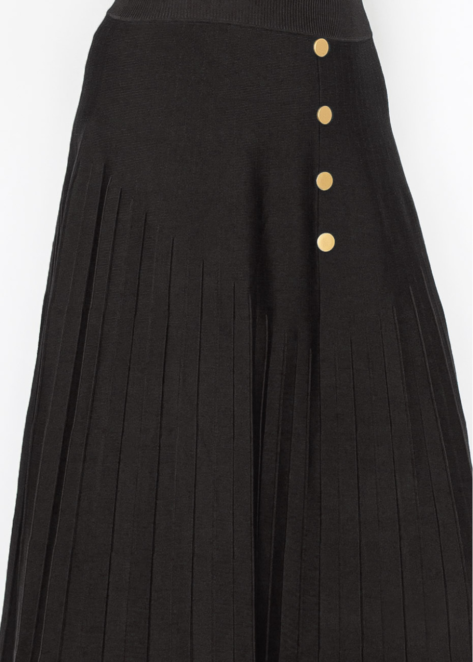 Black Pleated Skirt with Button Accents