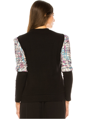 A mix of textures brings modern style to this black cardigan. The quilted front adds warmth and interest, while the ribbed sleeves provide a cozy feel. The gold-tone buttons and front pockets add a subtle touch of elegance, making it both practical and chic for cooler days.