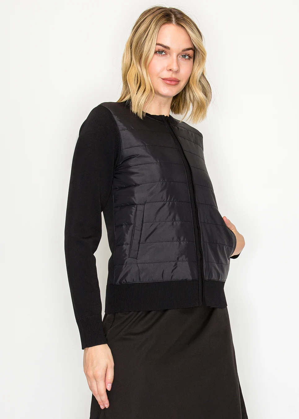 Quilted Knit Sleeve Jacket – Black