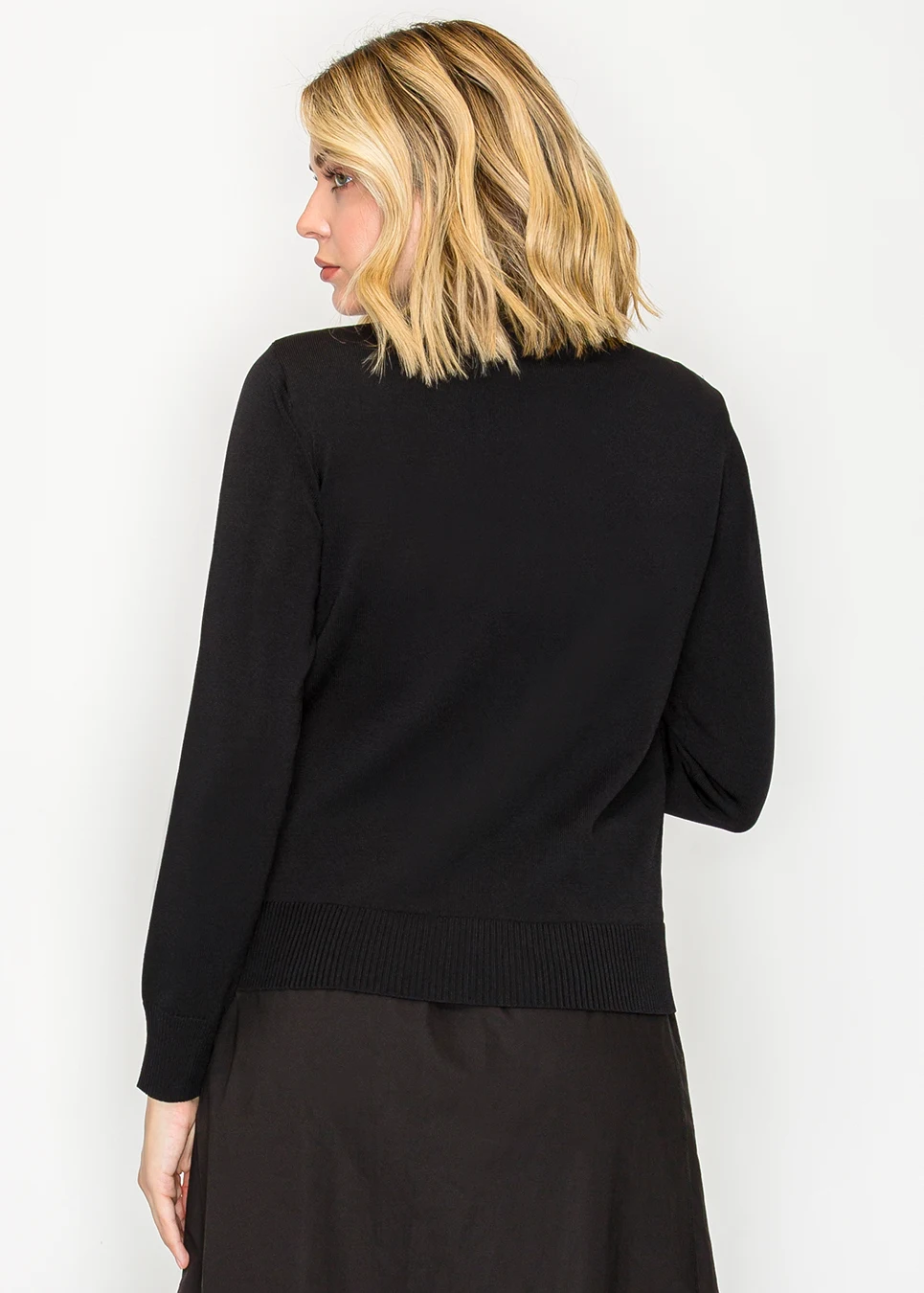 Ribbed Black Cardigan with White Collar